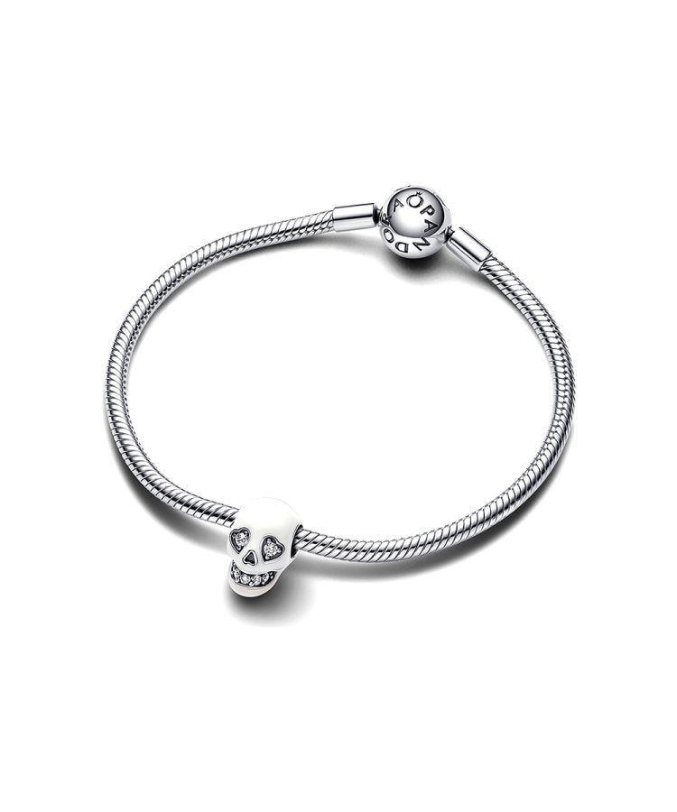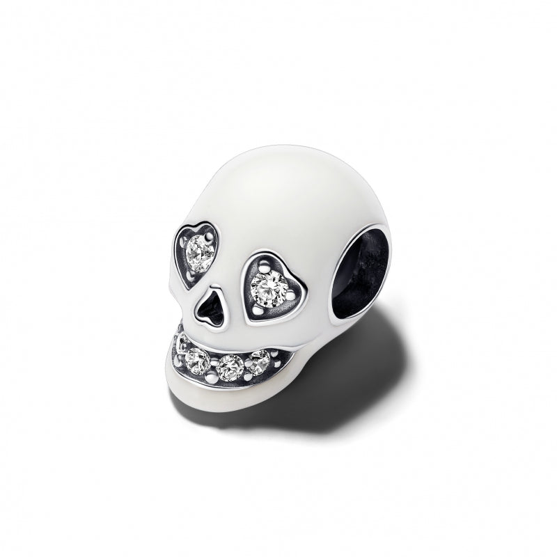 Acrescente um apontamento arrojado ao seu look quando usar a Conta Caveira Cintilante que Brilha no Escuro. Esta conta de prata apresenta um crânio coberto por esmalte que brilha no escuro, com boca e olhos em forma de coração, adornados com zircónias transparentes. Os pormenores recortados adornam os lados da boca, o nariz e a base do crânio. Preste homenagem ao mistério do pós-vida e acrescente um toque irreverente - e brilhante - ao seu estilo com este pendente caveira.