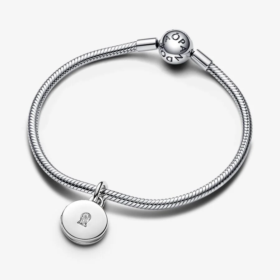 Mantenha o que mais ama perto do seu coração com a Conta Pendente Medalhão Love de Abrir e Gravar. Esta conta medalhão de prata apresenta uma zircónia transparente à frente, com a forma de uma fechadura, e abre-se e fecha-se em segurança, para que possa manter uma pequena fotografia, nota ou madeixa de cabelo no interior. O interior do medalhão está gravado com a mensagem "TODAY TOMORROW ALWAYS", estando o verso em branco para a sua própria gravação. Use-o no seu colar ou pulseira Pandora Moments, como símbolo de manter o seu amor seguro e para se lembrar de o valorizar, todos os dias.