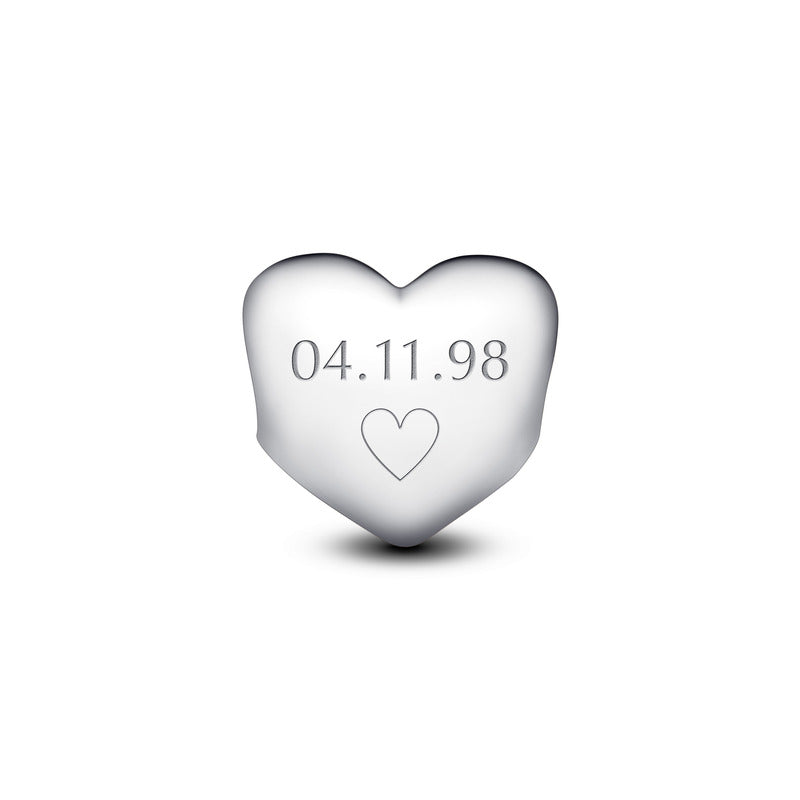 Crie a sua marca na nossa conta coração gravável. Em prata lisa, o nosso coração polido é a tela perfeita para a sua mensagem de amor.