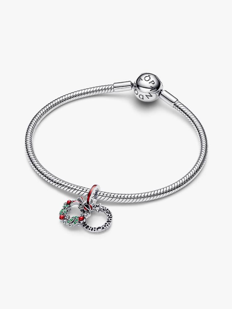 Envolva o seu coração com o espírito da estação. A nossa conta coroa de prata apresenta cristais man-made verdes e esmalte vermelho brilhante - uma forma divertida de espalhar alegria natalícia.
