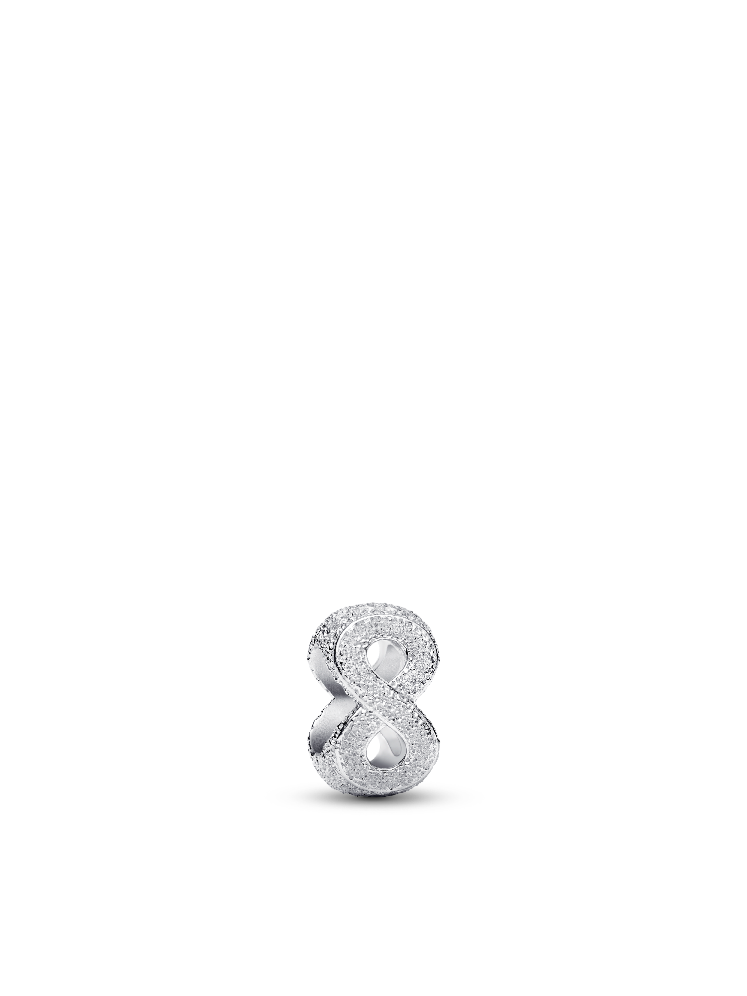 Infinitamente elegante. Esta mini conta infinito em prata de lei 925 brilha com uma textura de ponta de diamante, simbolizando o amor eterno, a ligação e a beleza das possibilidades infinitas da vida.