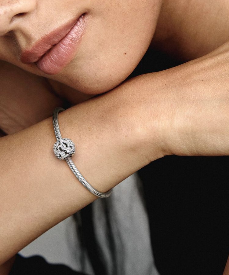 Acrescente um toque de brilho à sua coleção com a conta Sparkling Round Openwork Charm. Com acabamento manual em prata de primeira lei, este design a céu aberto é cravejado de zircónias redondas e em forma de pera. Coloque este modelo numa pulseira Pandora Moments com acabamento manual em prata de primeira lei e combine-o com outras peças cintilantes Pandora Timeless para um visual clássico que causa impacto. Em alternativa, use-o juntamente com charms em diferentes tons de metal para um acabamento contrastante.
