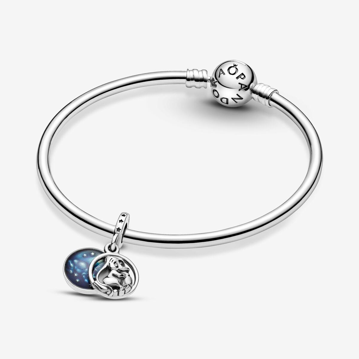 Acredite na magia com a Conta Pendente, Disney Dumbo Sweet Dreams. Com acabamento manual em prata, o disco frontal circular apresenta uma versão 3D do Dumbo da Disney a aconchegar-se à Sra. Dumbo. Nuvens, estrelas e uma lua crescente brilham através do esmalte azul transparente aplicado à mão que decora o disco posterior. Gravação “Sweet dreams little one” atrás. Estrelas gravadas decoram a união para maior detalhe. Conjugue-a com outras contas Disney x Pandora para um look divertido.