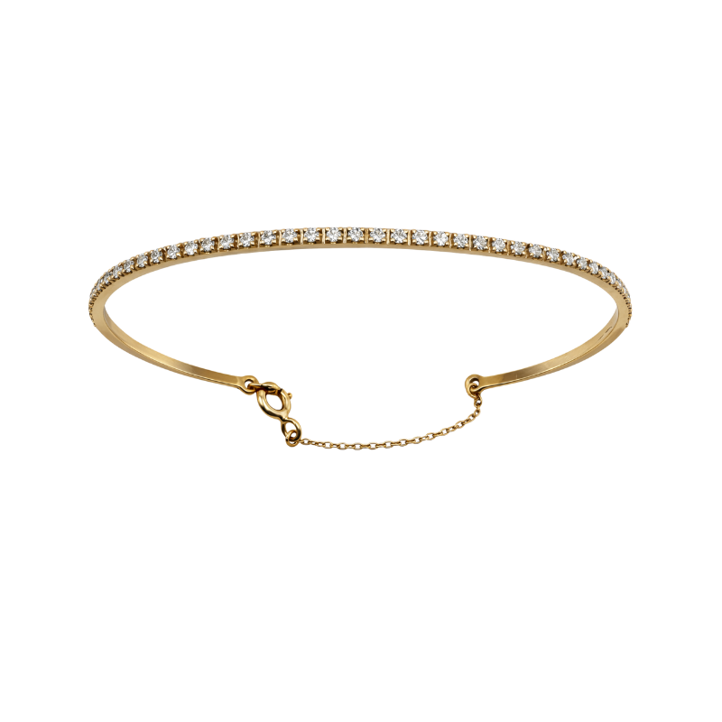 Pulseira escrava em ouro de 19,2k, adornada de 53 diamantes em talhe brilhante. Peso: 4,2g