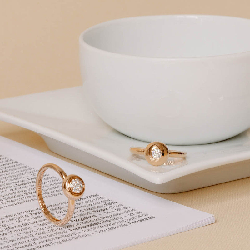 Anel Monseo Solitaire Pavê Ouro e Diamantes