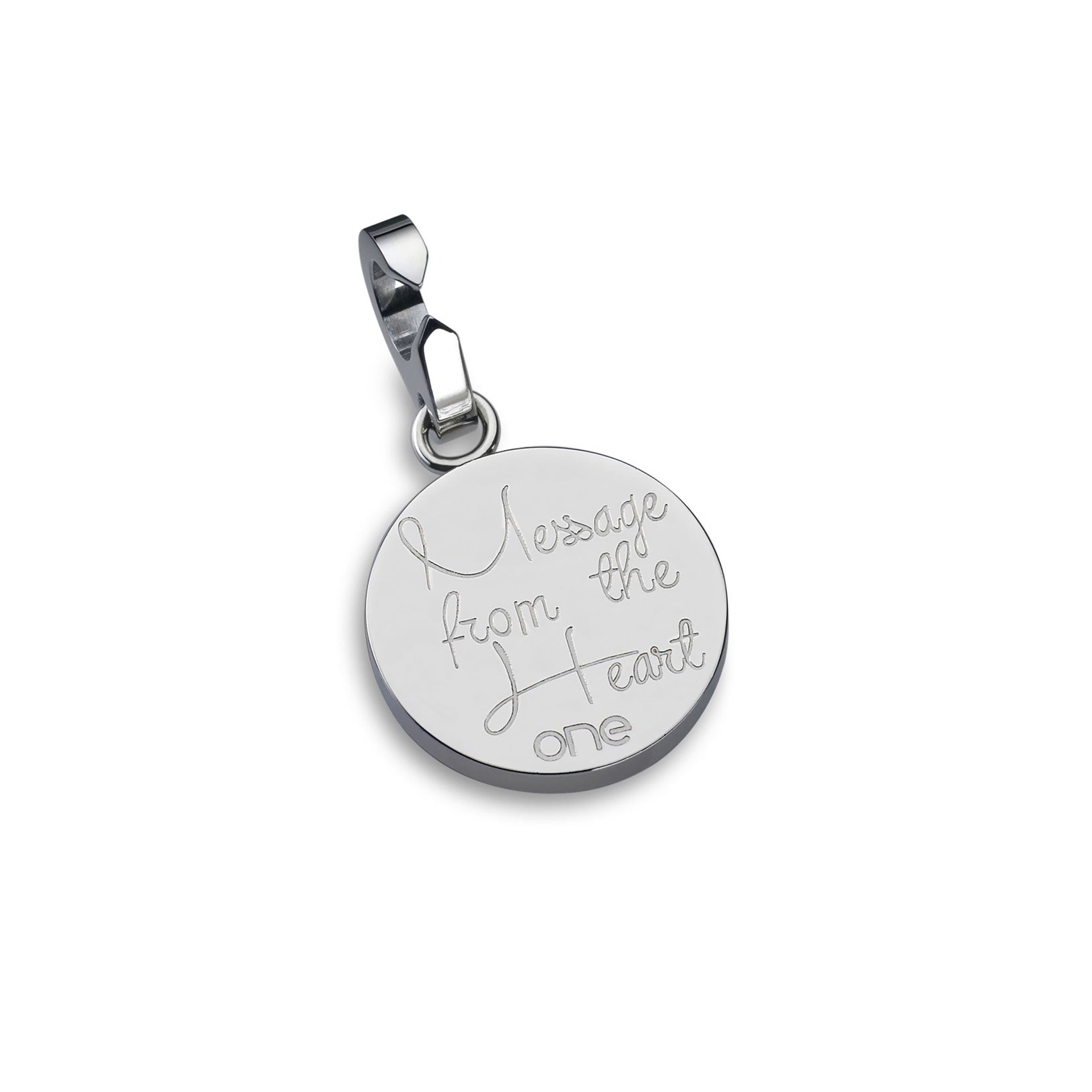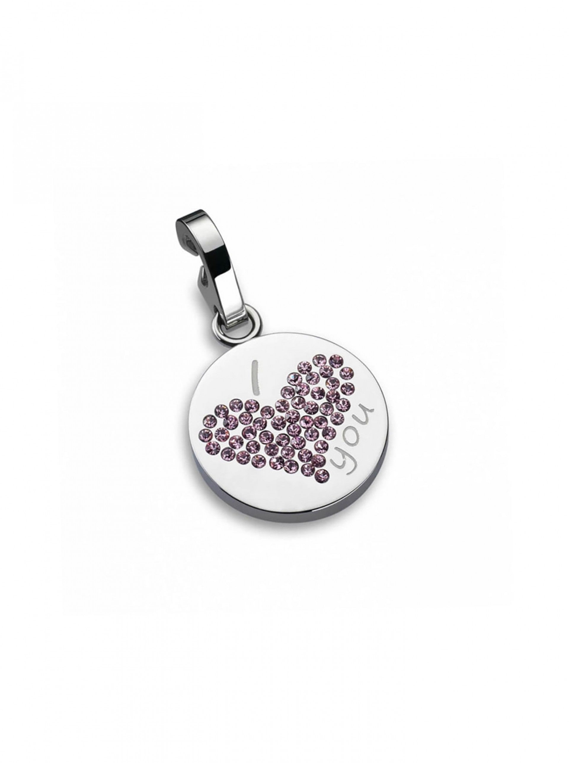 Charme redondo prateado com cristais cor-de-rosa na forma de um coração e uma inscrição na parte da frente onde se lê 'I love you' e outra na parte de trás 'Message from the heart'. Os charmes da coleção Energy for Life dão-te a possibilidade de contares a tua história de forma totalmente personalizada