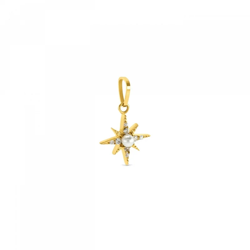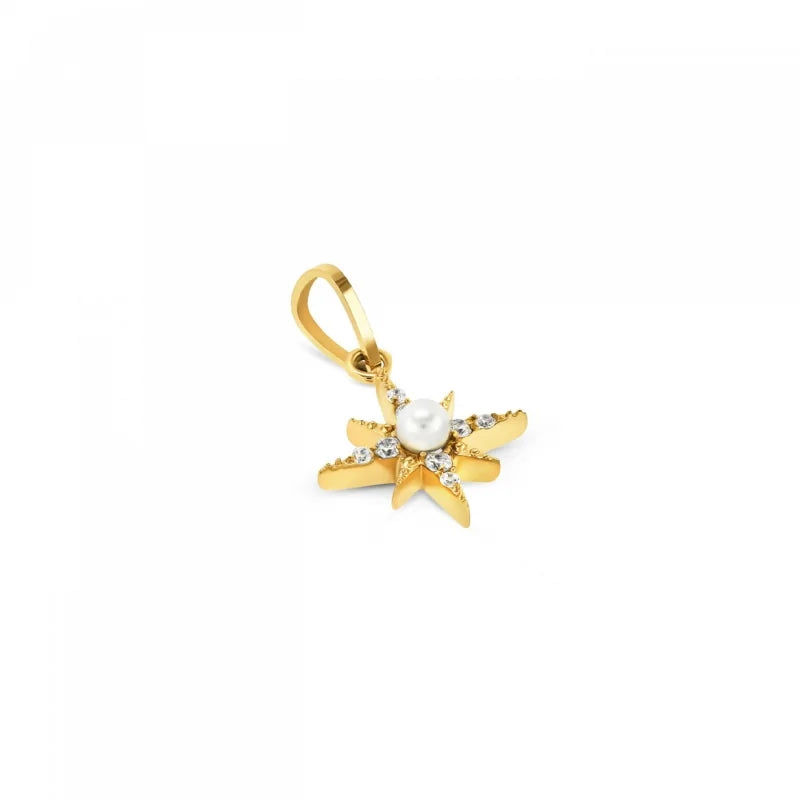 Charme com a forma da mágica estrela do Norte, totalmente em dourado e com cristais zircónias brancos cravados desde a pérola central. Os charmes da coleção Energy for Life dão-te a possibilidade de contares a tua história de forma totalmente personalizada. Uma memória, um momento inesquecível eternizado ao pescoço ou pulso. Compatível com todos os masters da coleção Energy for Life (colares, pulseiras e escravas com fecho).