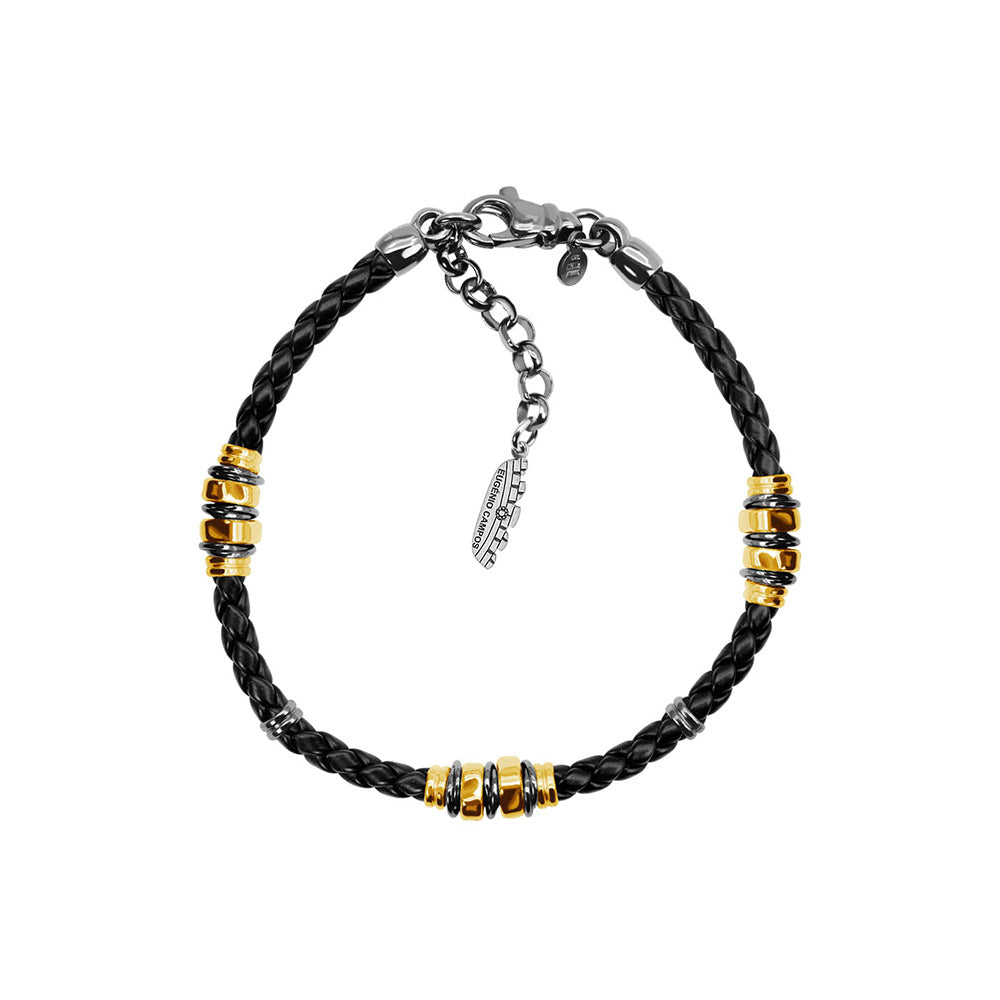 Em prata 925 banhada a ródio e detalhes em ouro amarelo, com trançado de couro preto e fecho metálico seguro. Um acessório masculino versátil, elegante e com assinatura portuguesa — perfeita para realçar o estilo diário.