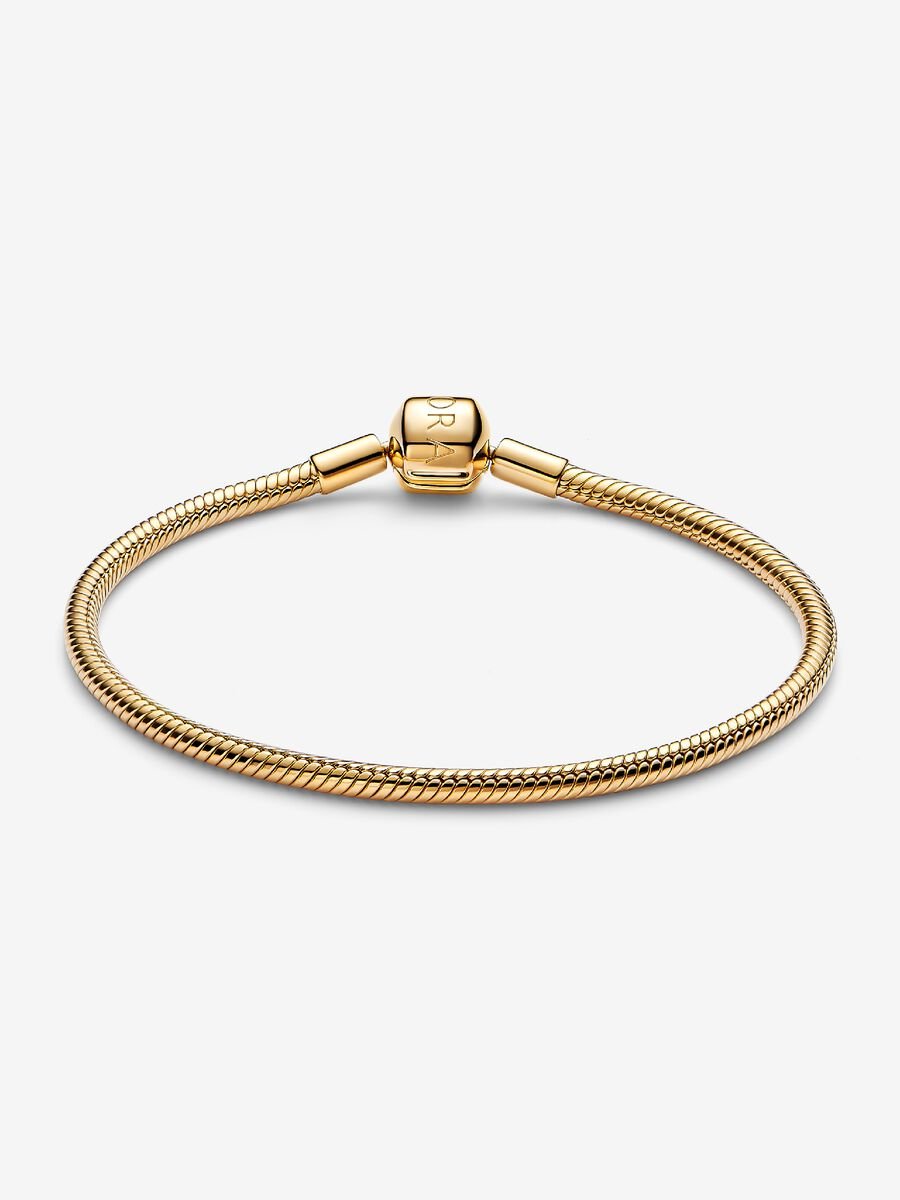 Uma parte importante do legado da Pandora, a pulseira com fecho barril foi um dos nossos primeiros designs de pulseiras de malha snake. Com revestimento de ouro 14k, está pronta para conjugar com as contas que adora.