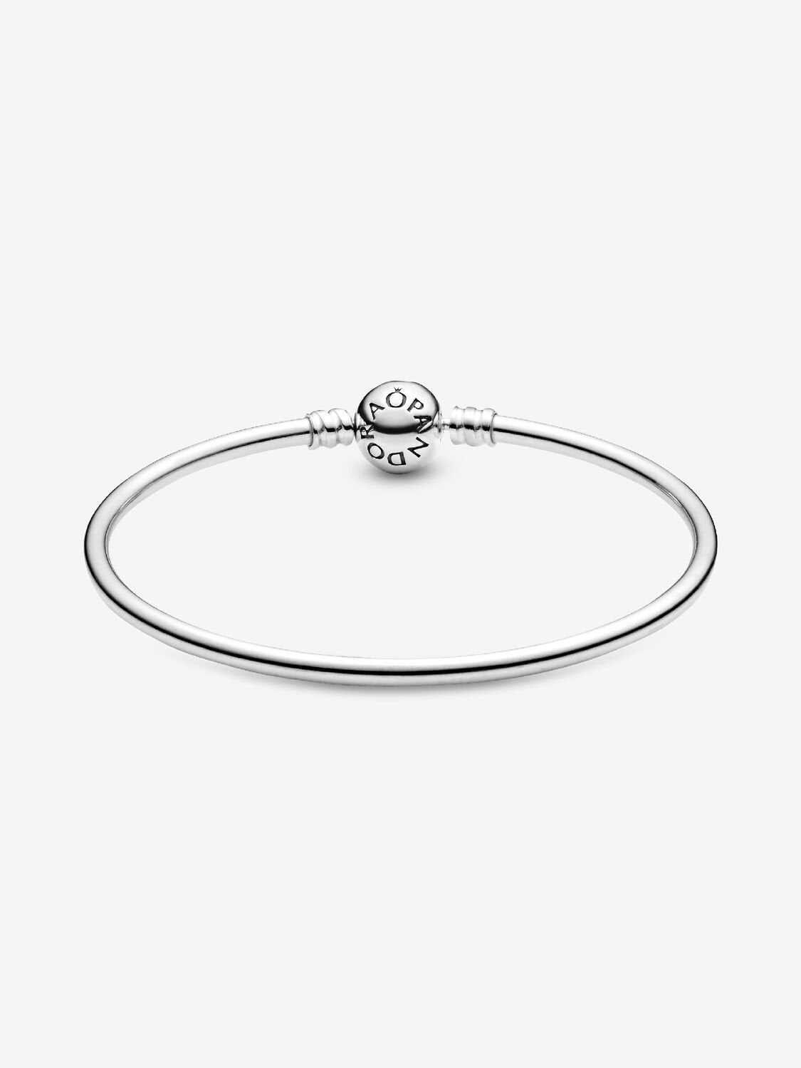 Fina e elegante. Em prata polida, esta bangle é rematada com um fecho de esfera em relevo. Use-a sozinha ou crie a sua pulseira de sonho, adicionando peças preferidas da sua coleção pessoal de contas.