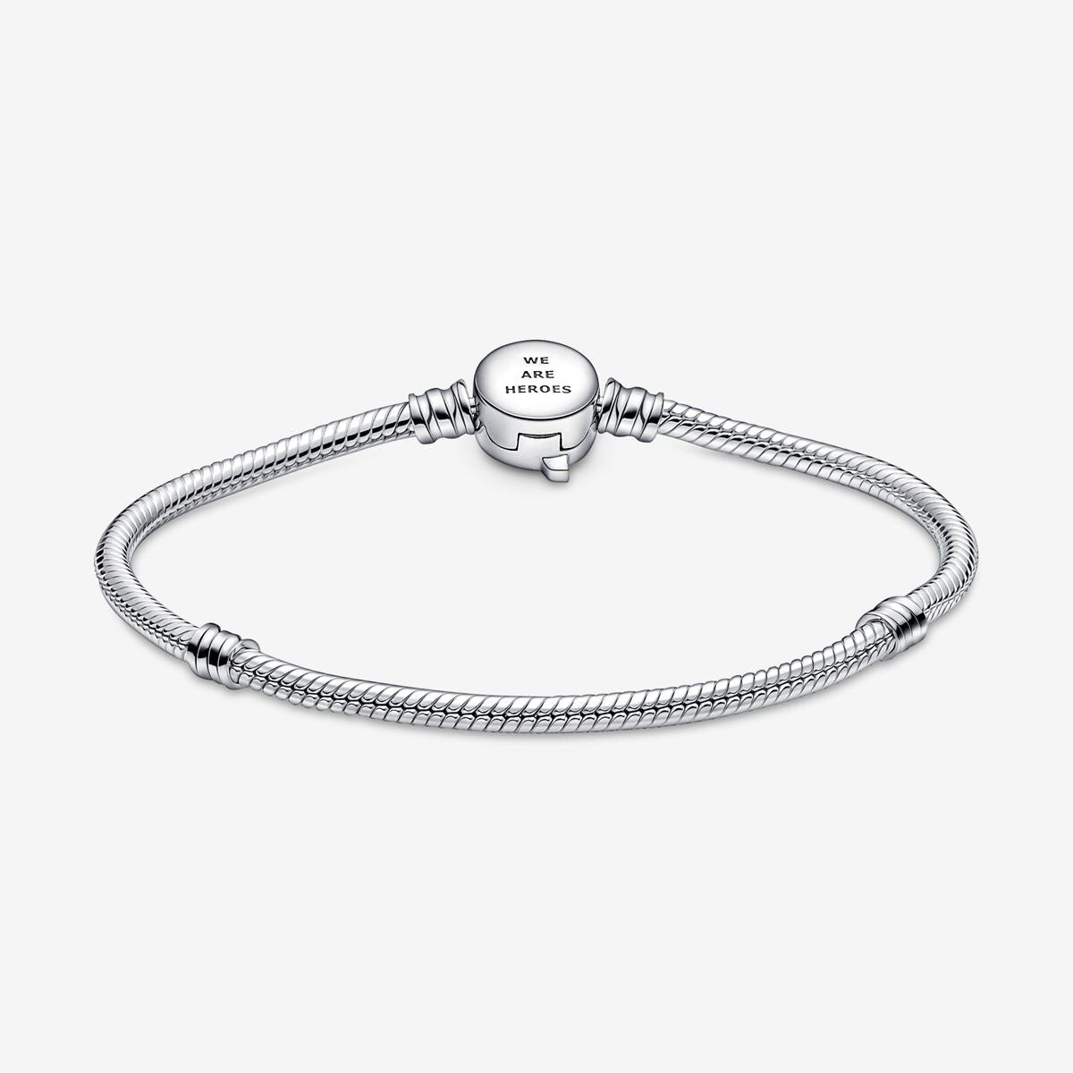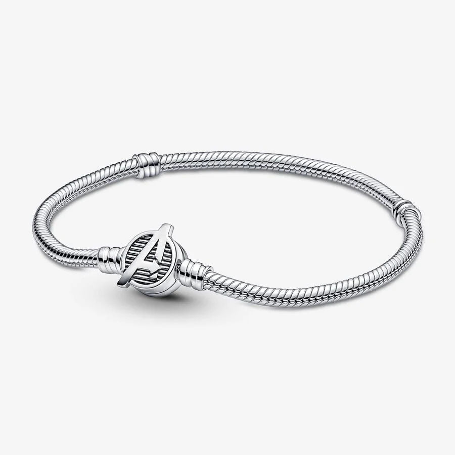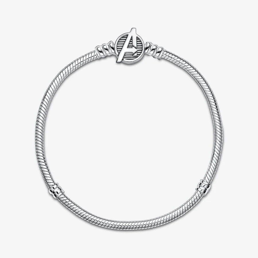 Reúna os seus heróis na nossa Pulseira Moments Marvel The Avengers Logo. Com acabamento manual em prata, este suporte de contas apresenta um fecho gravado com o logótipo icónico Avengers e pormenores de linhas gravadas. É a forma perfeita de expor as suas personagens preferidas e revelar ao mundo o seu amor pelo Universo Cinemático da Marvel. Pode conjugá-la com 18 contas.