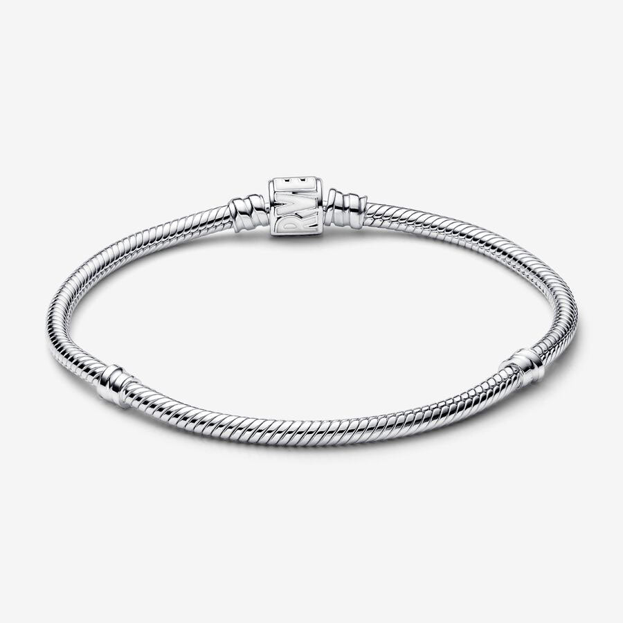 Construa a sua equipa de sonho. Com acabamento manual em prata, esta pulseira lendária apresenta o nosso padrão icónico de malha snake e um fecho com o logótipo Marvel, detalhado com letras ligeiramente elevadas em esmalte branco. Pode conter até 18 contas ou pendentes. Basta adicionar um clip em cada fio para o dividir em três secções e escolher as suas contas hero preferidas. Use a nossa Pulseira Malha Snake com Fecho Logótipo Marvel Pandora Moments, para se lembrar de encontrar o seu poder todos os dias.