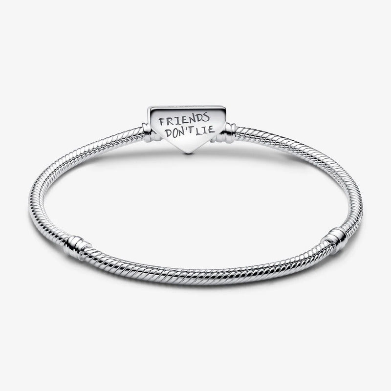 Dedicado para os amantes de mistério e suspense, combine ao look esta pulseira prateada de referência à icónica série americana "Stranger Things".Trabalhado em prata de lei 925, este modelo prateado destaca o seu fecho triangular gravado com o nome da série para um efeito sobrenatural e vibrante com a coloração vermelha. Marcando a sua presença com suspense, adorne o visual com joias que capturam a sua atenção, ideal para todos os fãs que procuram expressar o seu gosto e essência pela natureza misteriosa de ficção científica.