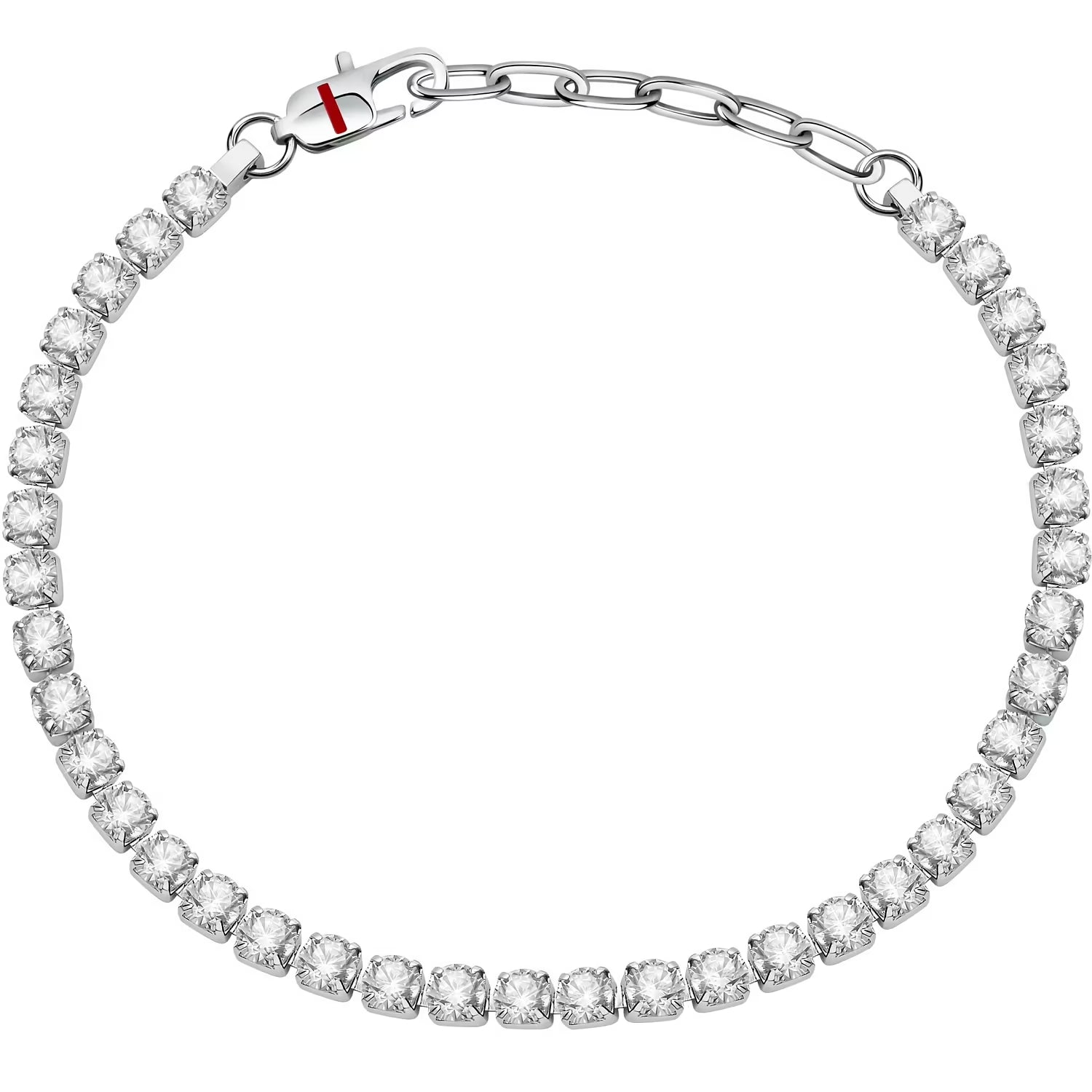 A pulseira é feita de material em aço e tem um cristal. É um acessório elegante que pode ser usado para qualquer ocasião.