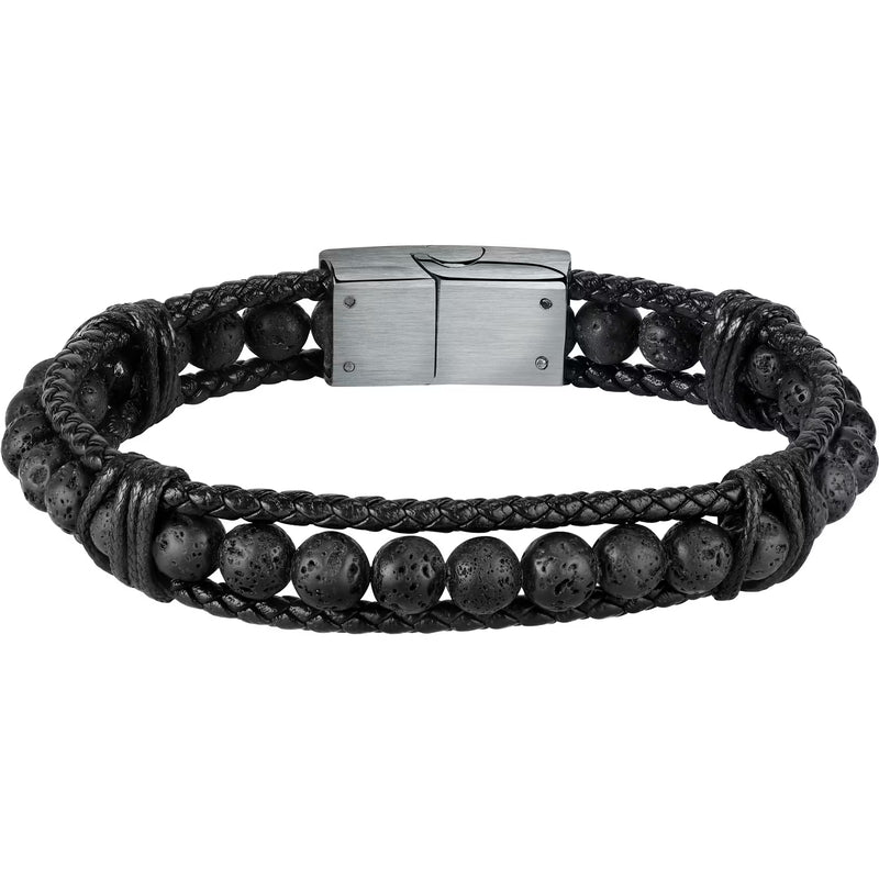 Pulseira de homem, em pele, da marca Sector Jewels. A pulseira é preta e tem um fecho de metal.