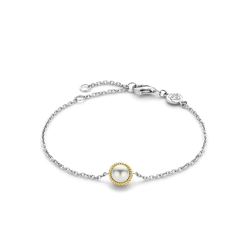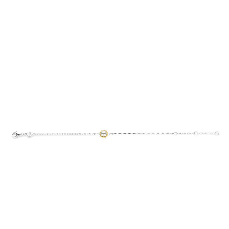 Fabricado em prata de lei 925 da mais alta qualidade, é depois revestido com uma camada de platina para o proteger do desgaste diário e mantê-lo sempre luminoso. A configuração é banhada a ouro amarelo. As pérolas são sempre uma boa ideia. Esta pulseira de pérolas vintage irá adicionar um toque extra de feminilidade e elegância ao seu look. O seu comprimento é ajustável para garantir que assenta sempre perfeitamente. O comprimento padrão da pulseira é de 16cm. Possui uma extensão de 4cm que permite utilizá-lo em 3 comprimentos diferentes: 16cm, 18cm e 20cm.