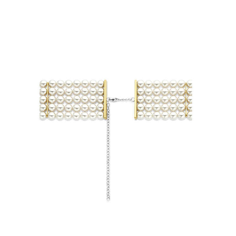 A pulseira apresenta cinco fios de pérolas brancas brilhantes em configurações banhadas a ouro amarelo radiante. Esta luxuosa pulseira é feita em prata de lei 925 da mais alta qualidade e depois banhada a ouro amarelo para um toque opulento e quente. As camadas de pérolas cairão graciosamente em cascata à volta do seu pulso, criando um visual cativante e luxuoso que certamente chamará a atenção. Combine-o com um vestido de noite para um look refinado e glamoroso, ou use-o com um outfit casual para fazer uma declaração de elegância sem esforço. Delicie-se com o luxo das pérolas e com a beleza intemporal do ouro amarelo com a nossa pulseira de pérolas com vários fios. Todas as nossas pulseiras não contêm níquel e são hipoalergénicas.