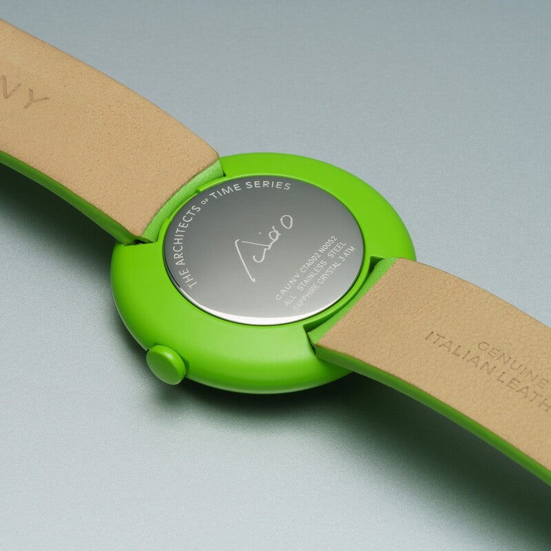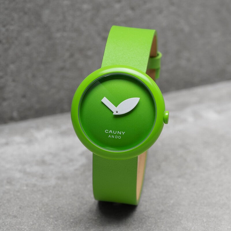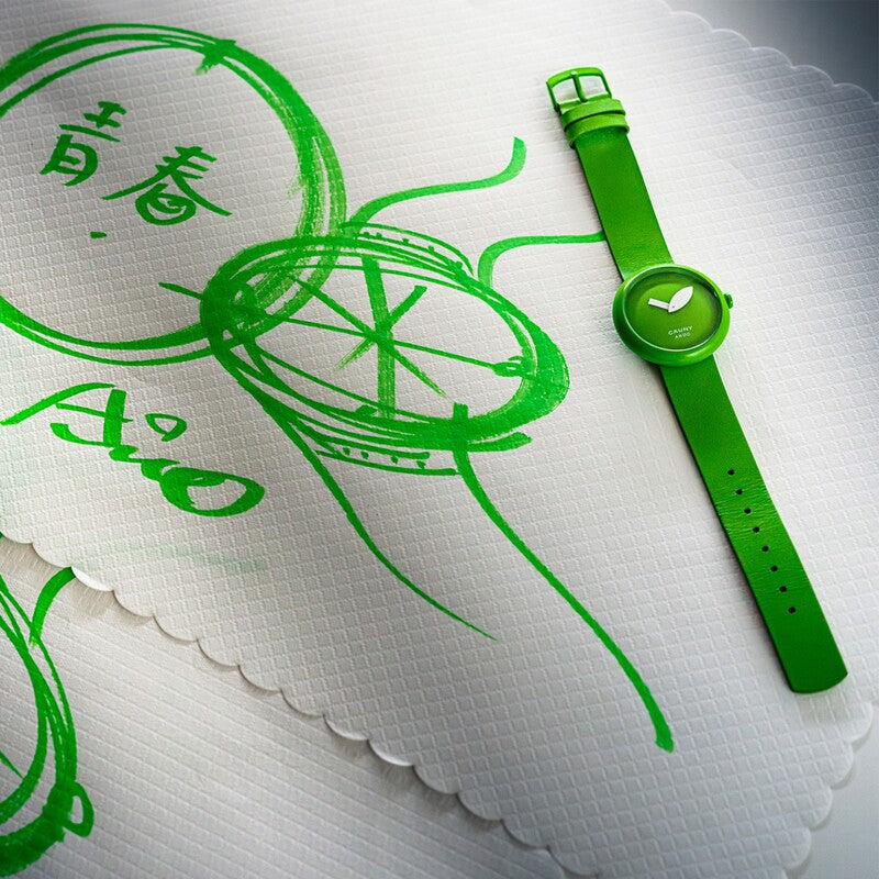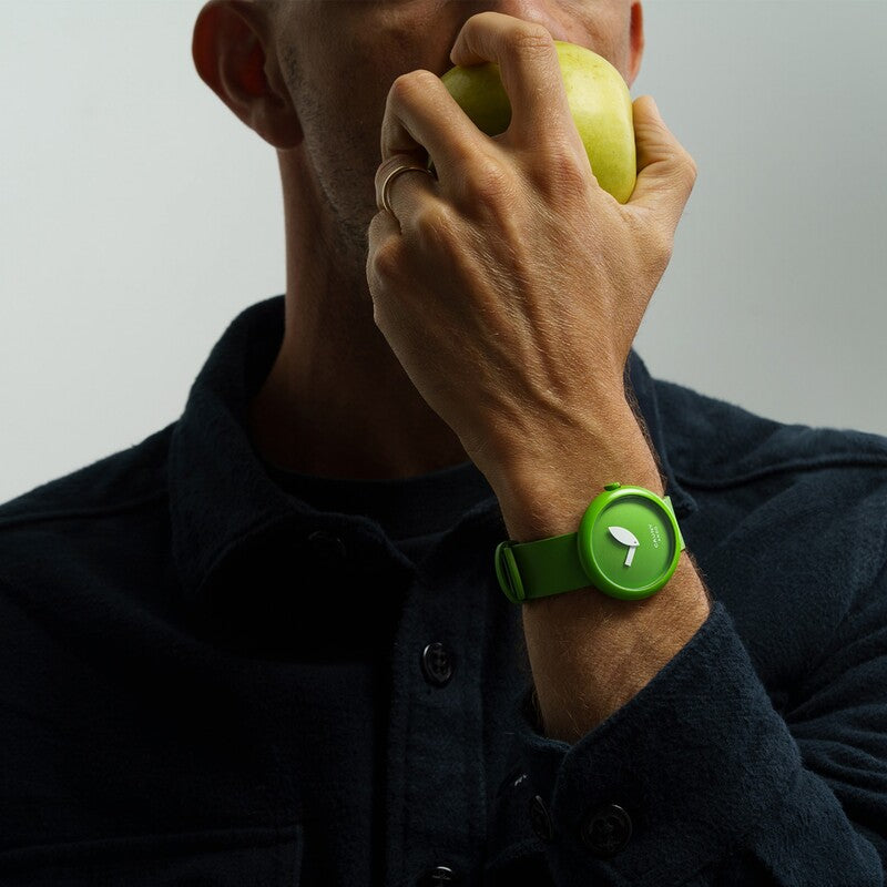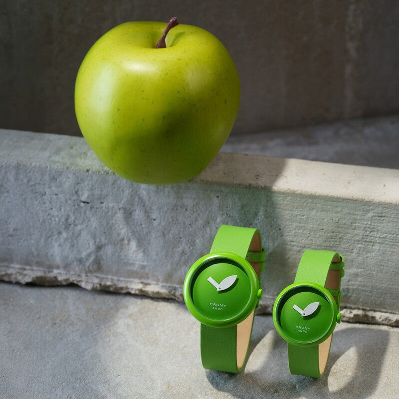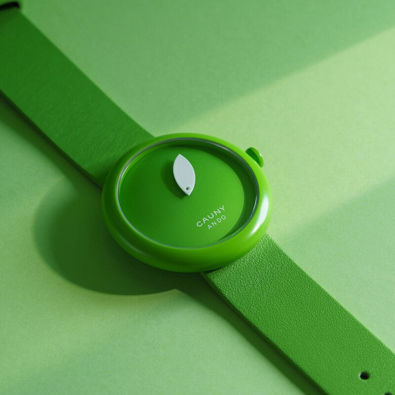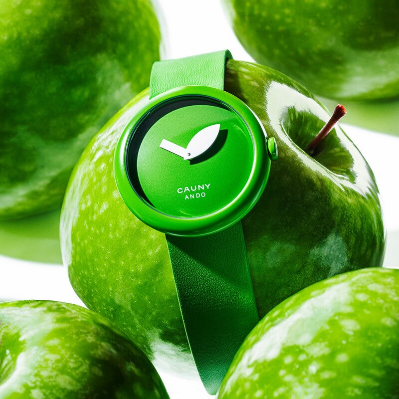 Projetado com base nas maçãs verdes que o Pritzker de 1995 costumava colocar do lado de fora de seus prédios, este relógio simboliza a juventude. Esta versão verde é a mais fiel ao conceito de Ando e prova que a juventude "não é uma fase da vida, mas um movimento do coração".
