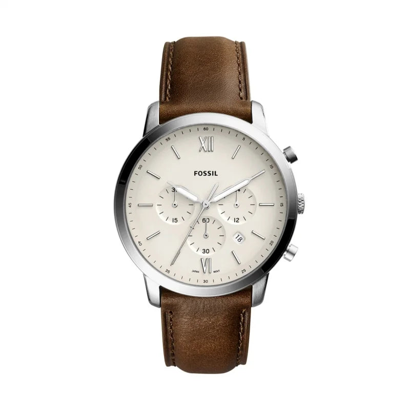 Incorporando elementos da arquitetura de meados do século, este Fossil Neutra cronógrafo apresenta uma construção equilibrada, decorada com um mostrador minimalista e uma caixa esculpida.