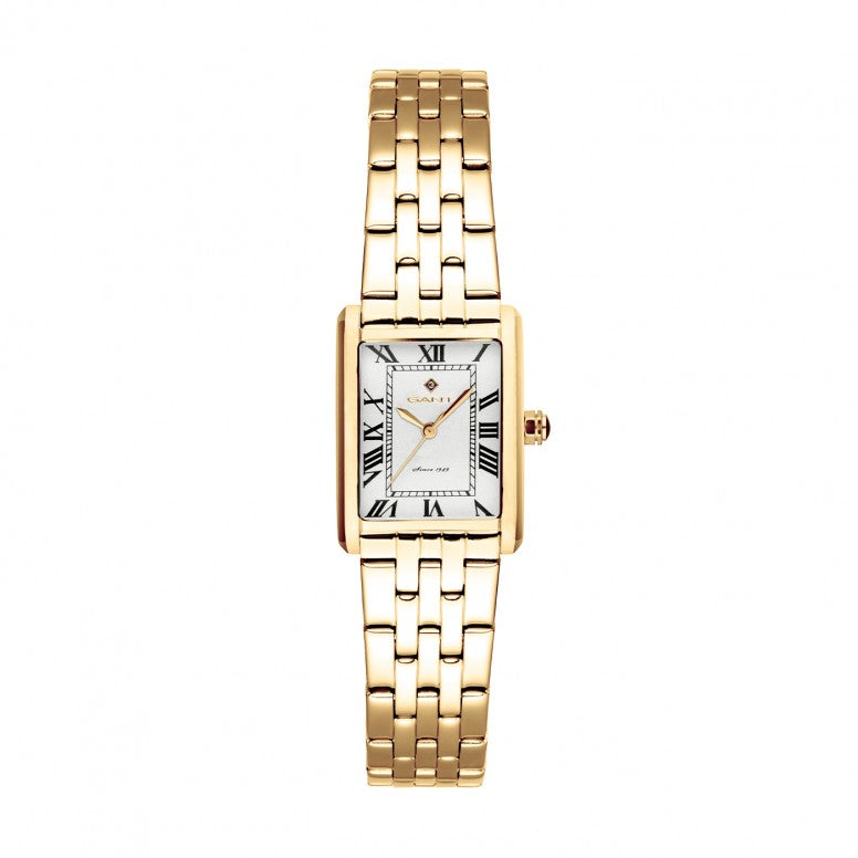 Um relógio GANT é muito mais do que um acessório. Usando materiais de luxo, criámos uma coleção feminina para homenagear a nossa história de American Sportswear icónico. O relógio Rhode Island é feito em aço inoxidável banhado a ouro e vidro mineral. Conta com três ponteiros, para um visual simples e elegante.