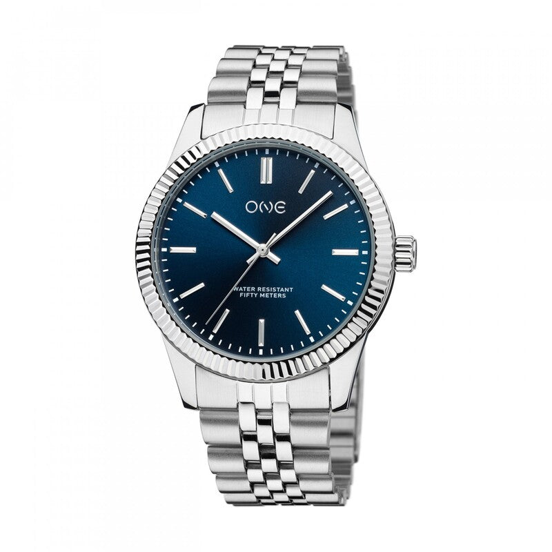 O relógio analógico Royal é um modelo masculino com um look moderno e contemporâneo. Segue uma linha mais monocromática, com a caixa e bracelete integralmente em prateado. O mostrador, redondo com um fundo azul, deixa transparecer os três ponteiros (horas, minutos e segundos) e doze indexes assinalados por pequenos traços prateados assim como todas as posições dos segundos marcadas a preto. A caixa também em prateado combina com a bracelete de elos estilo jubilee integralmente prateada. Resistência à água de 5 ATM.