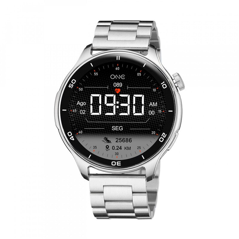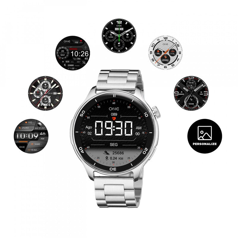 O smartwatch One Men Explorer GPS, da geração 4, eleva a tua experiência ao próximo nível com a mais recente funcionalidade: GPS integrado, agora disponível em 5 modos de treino em tempo real: corrida, caminhada, ciclismo, trail running e trail walking. Esta inovação permite um acompanhamento mais preciso e autónomo das tuas rotas, mesmo sem o telemóvel por perto. Com um design robusto e masculino, o modelo apresenta uma bracelete em aço inoxidável prateada e um ecrã AMOLED, que garante uma visualização nítida e vibrante. A função de comando por voz com tecnologia AI permite interagir com o telemóvel de forma prática e rápida diretamente a partir do smartwatch, todas as respostas e informações processadas são apresentadas no telefone. A ligação com a app One Smart completa a experiência, oferecendo monitorização de saúde, acompanhamento detalhado da atividade física e, agora, treinos com GPS em tempo real para quem vive com espírito de aventura. Combinando tecnologia de ponta e versatilidade, este smartwatch é a escolha ideal para quem quer estar sempre ligado e sempre no rumo certo.