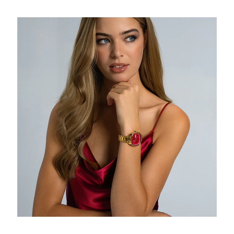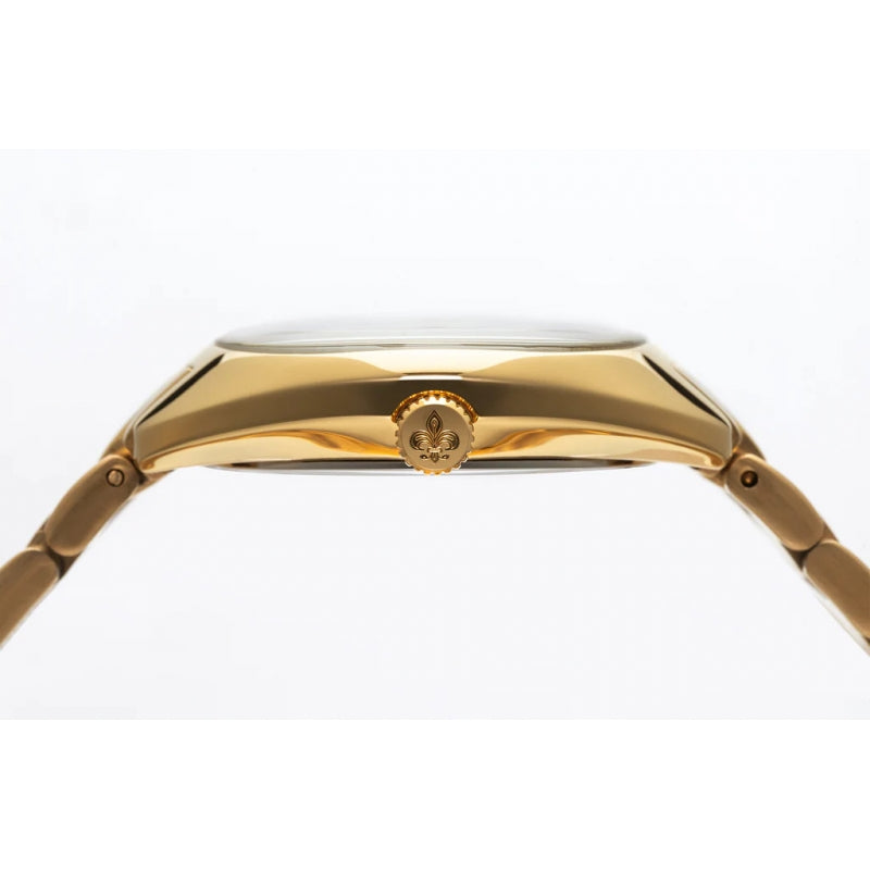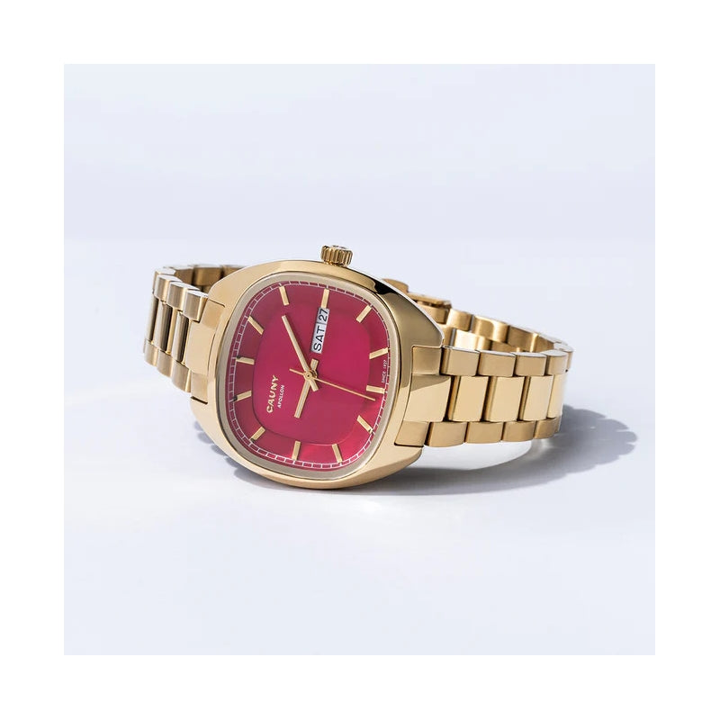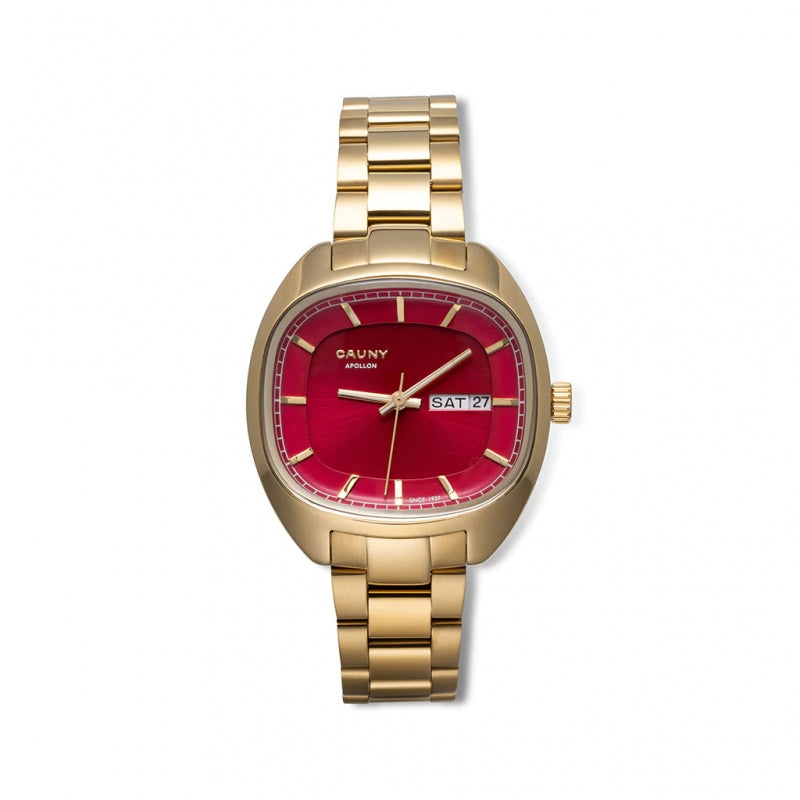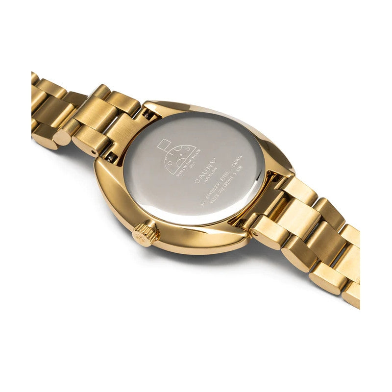 Relógio Cauny Apollon CAP034. Caixa com diâmetro aproximado de 36 mm, cor dourado e bracelete cor dourado. Está equipado com um movimento quartzo. O relógio é estanque até 30 m | 3 bar | 3 atm. Composição: aço.