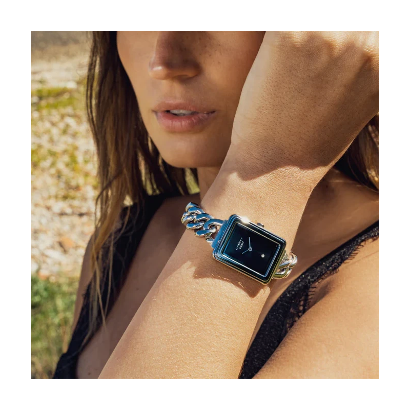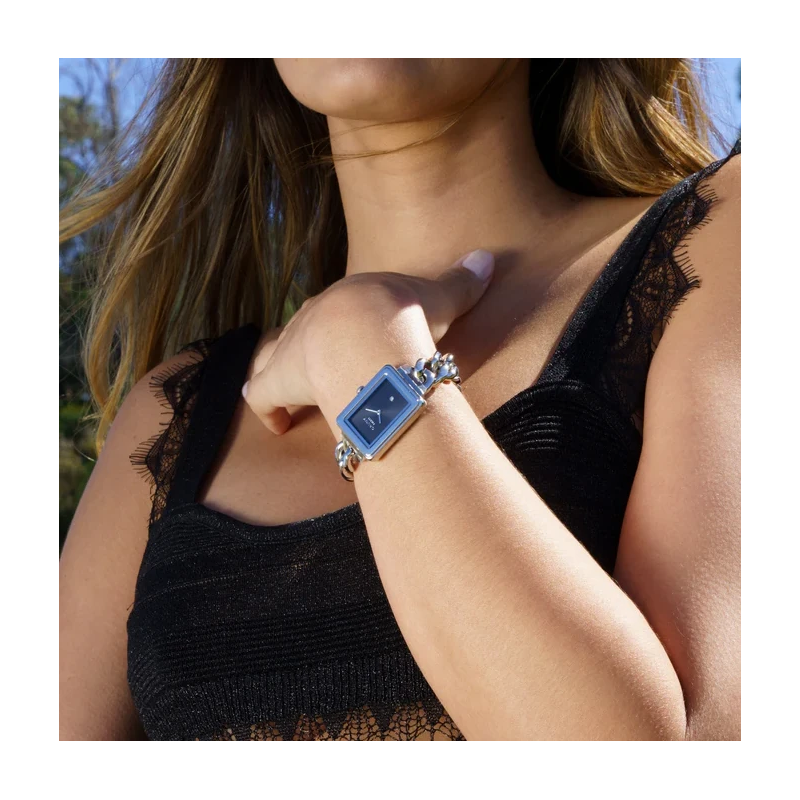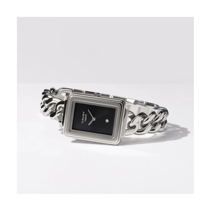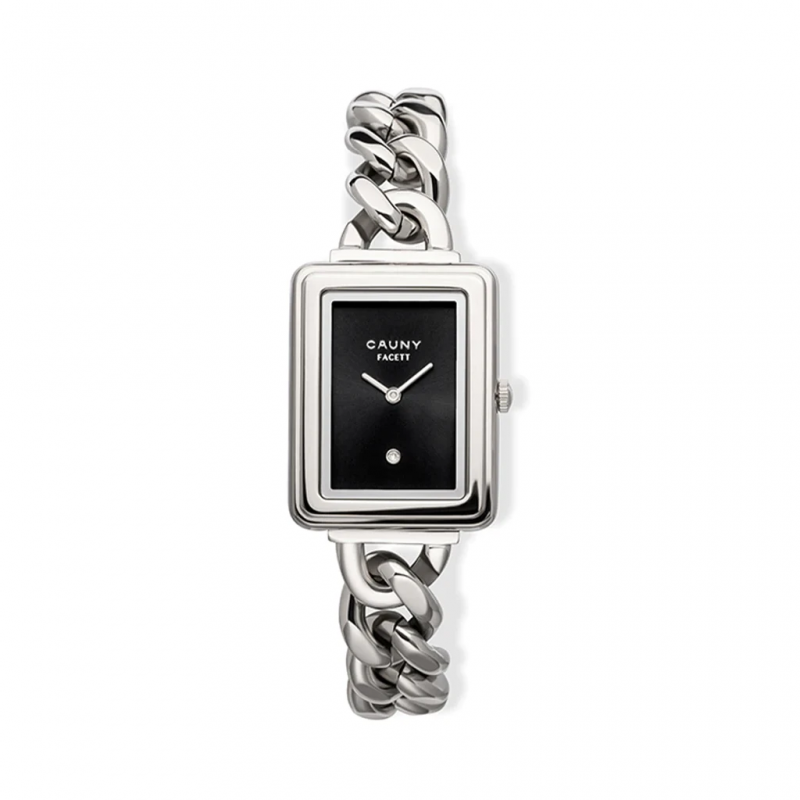 O Facett Diamond Silver distingue-se pelo seu mostrador retangular, uma estreia no design icónico característico da Cauny. Com caixa em aço de alta precisão 316L, uma requintada corrente de elos prateada e o mostrador preto com um diamante natural ao centro, este modelo é a prova de que um relógio também é uma jóia.