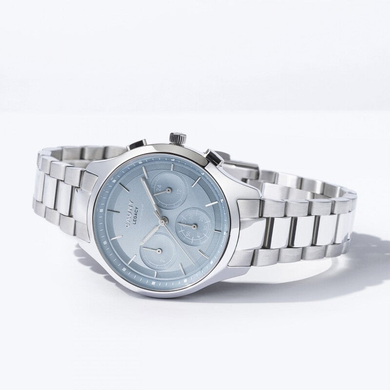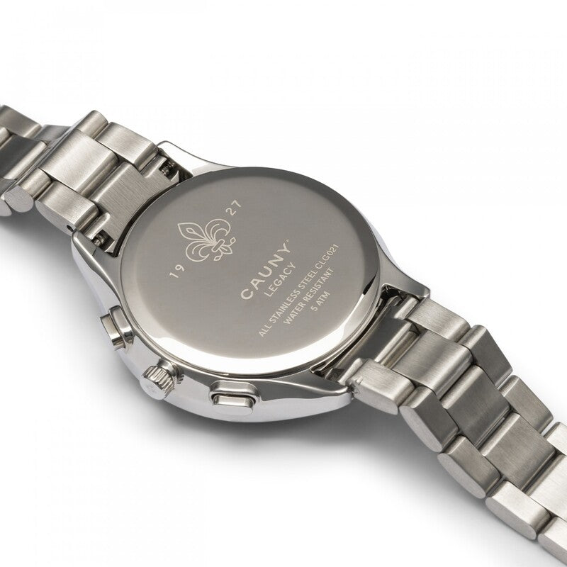 Com três contadores e botões laterais tradicionais, este elegante cronógrafo combina com qualquer visual graças à sua pulseira de aço sólido em ouro rosa, que lhe dá versatilidade, e à combinação sofisticada do mostrador branco com detalhes em ouro rosa. Um best-seller da Cauny e um relógio que você nunca vai querer tirar do seu pulso.