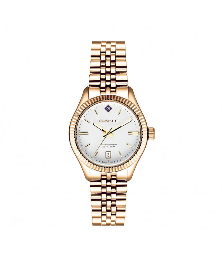 Relógio Gant Sussex Dourado - G136008 para mulher, com caixa e bracelete douradas em aço inoxidável e mostrador branco.