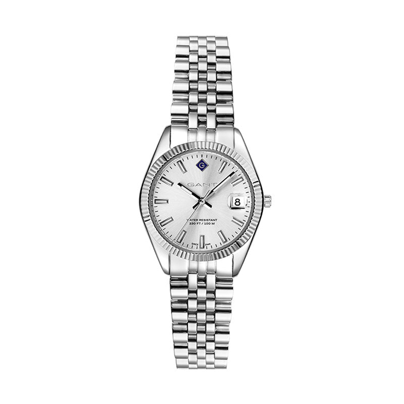 Um relógio GANT é muito mais do que um acessório. Usando materiais de luxo, criámos uma coleção feminina para homenagear a nossa história de American Sportswear icónico. O relógio Sussex Mini é feito em aço inoxidável e vidro mineral. Conta com três ponteiros e função de data. Diâmetro da caixa: 28 mm; espessura da caixa: 8 mm Três ponteiros, função de data Resistência à água 10 ATM