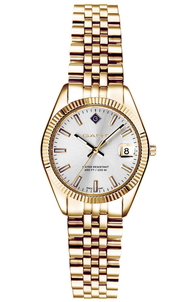 Um relógio GANT é muito mais do que um acessório. Usando materiais de luxo, criámos uma coleção feminina para homenagear a nossa história de American Sportswear icónico. O relógio Sussex é feito em aço inoxidável banhado a ouro e vidro mineral. Conta com três ponteiros e função de data, para um look clássico e sofisticado. Diâmetro da caixa: 34 mm; espessura da caixa: 9 mm Três ponteiros, função de data Resistência à água 5 ATM