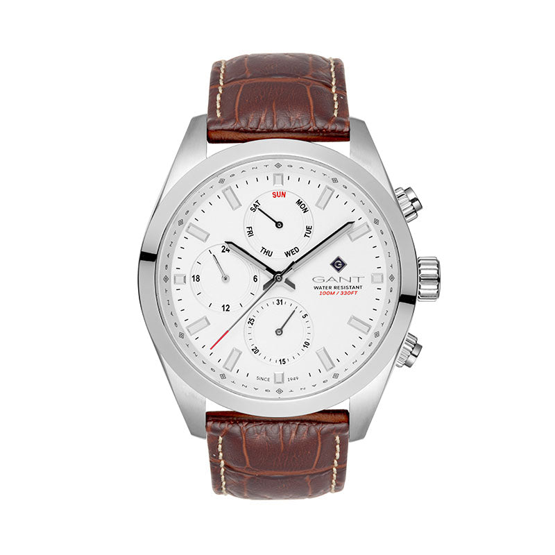 Desportiva e clássica, a nossa coleção de relógios masculina combina inovação e mestria de alta qualidade para criar peças inspiradas pelo nosso lema "Never Stop Learning". O relógio Rochester é feito em aço inoxidável e tem uma bracelete em pele. Conta com três ponteiros, funções de data e dia e apresentação de 24 horas circular. Diâmetro da caixa: 43,5 mm; espessura da caixa: 10 mm Apresentação de 24 horas, funções de data e dia Resistência à água 10 ATM