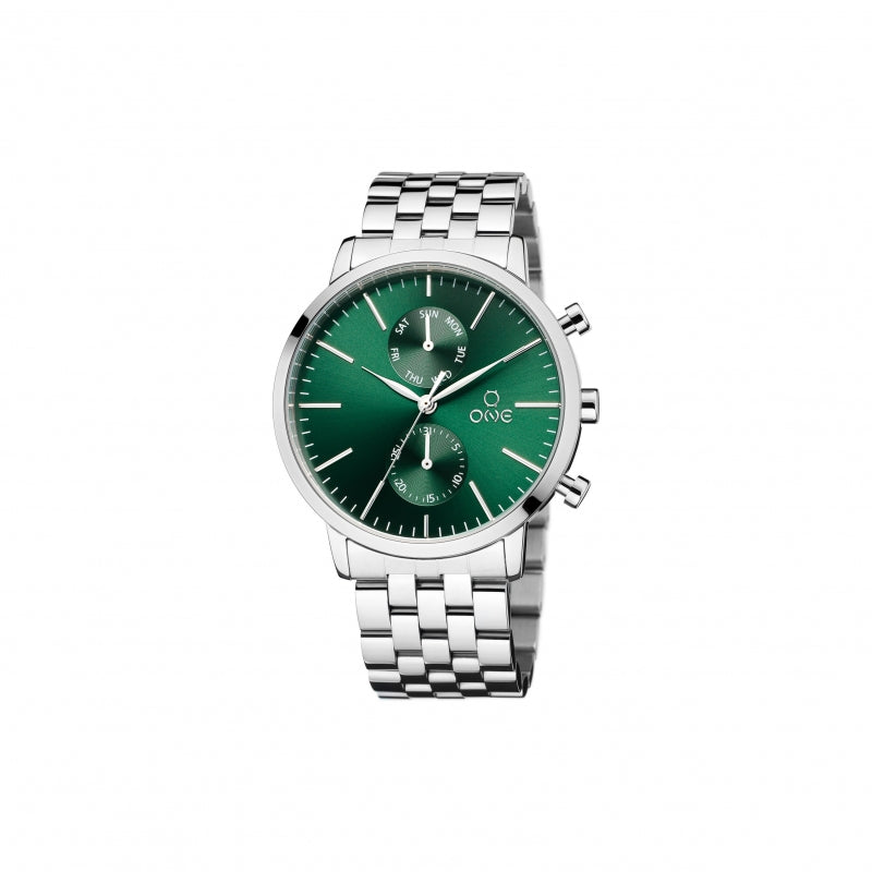 O relógio analógico Elite é uma peça robusta, moderna e contemporânea. Com um mostrador redondo e de fundo verde, sobressaem os três ponteiros e indexes prateados, no mesmo tom que a bracelete de elos em aço inoxidável . O relógio Elite conta ainda com multifunções: indicação dos dias da semana na parte superior do mostrador e dos dias do mês na parte inferior. Resistência à água de 5 ATM.