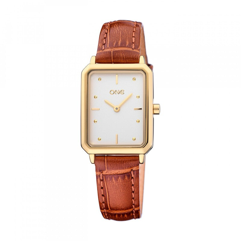 O relógio Dare com uma bracelete em pele castanha e mostrador rectangular dourado é uma peça que evoca relógios de outros tempos, 'vintage' com um toque moderno. Com uma aparência clássica e elegante , o relógio Dare é uma peça absolutamente intemporal, unissexo e perfeito para qualquer ocasião, seja para o dia-a-dia ou para um momento mais formal. Um reminder constante de que, em qualquer situação, é possível superar e triunfar.