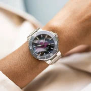 Esta versão do Aquis Date Upcycle de 43,50 mm de elevando desempenho, um relógio de mergulho de luxo para uso diário, tem mostrador feito de plástico PET reciclado. O processo de fabrico aleatório significa que cada mostrador é único, escrevendo uma história de mudança que pode levar consigo onde quer que vá.