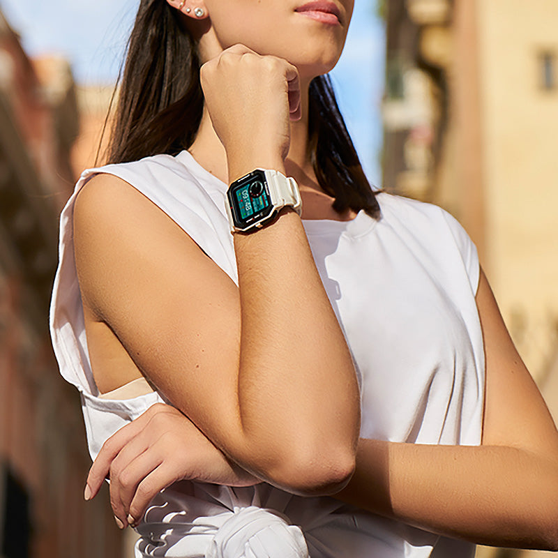 O Smartwatch Radiant é mais do que um simples acessório tecnológico; é uma declaração de estilo e eficiência. Com uma pulseira de silicone branco e uma caixa de relógio também branca, este smartwatch apresenta um design elegante e moderno que complementa qualquer outfit. A esfera preta adiciona um contraste sofisticado, tornando-o não apenas funcional, mas também um acessório de moda. Este smartwatch oferece funcionalidades essenciais como alarme e pedómetro, tornando-o um companheiro ideal para o seu estilo de vida ativo. O cristal mineral resistente e o movimento de quartzo garantem durabilidade e precisão, enquanto o produto plug-in com tomada EU facilita o carregamento.
