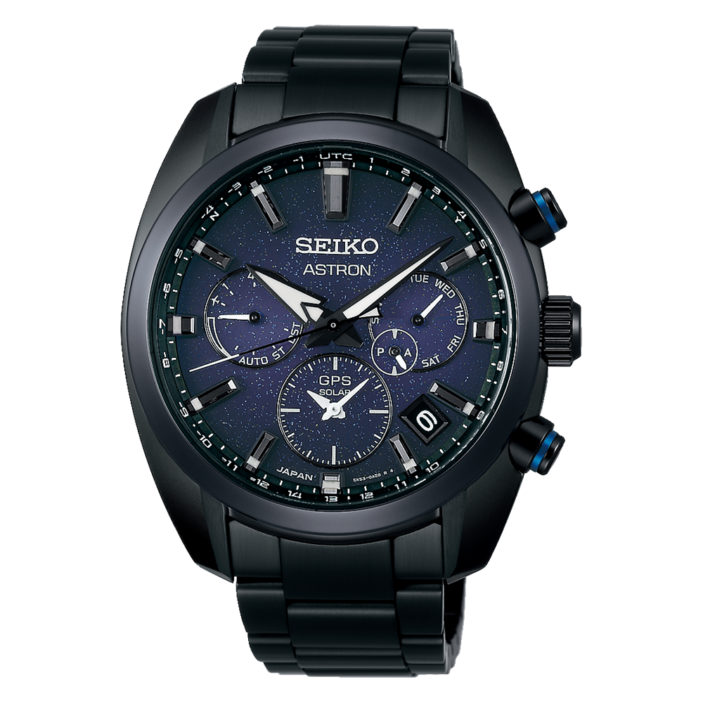 Design, funcionalidade e qualidade de construção deste relógio de excelência! Total de 17 funções e características em destaque! Seiko® Astron GPS Solar 5X53 Series, SSH077J1 com duplo fuso horário. Movido a energia solar, comunicável com satélites, ajusta automaticamente ao seu fuso horário em qualquer lugar da Terra com 39 fusos horários. Autonomia em cerca de 6 meses (quando totalmente carregado) ou 2 anos em modo poupança de energia. Perfeito para viajantes do mundo inteiro. Resistente à água até 10 ATM, caixa em aço com revestimento super rígido preto. Vidro safira de dupla-curvatura. LumiBrite® nos ponteiros e índices para boa visibilidade em ambientes sem luz. DST (horário de verão), prevenção de sobrecarga, calendário perpétuo até 28 de fevereiro de 2100, visor de reserva de energia, resultado da receção, status de satélite, hora mundial (39 fusos horários). Bracelete em aço com revestimento super rígido preto com fecho de báscula triplo com botão de segurança.