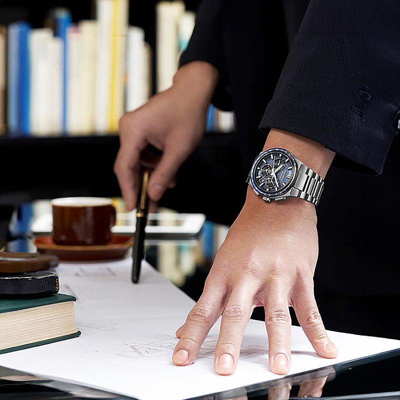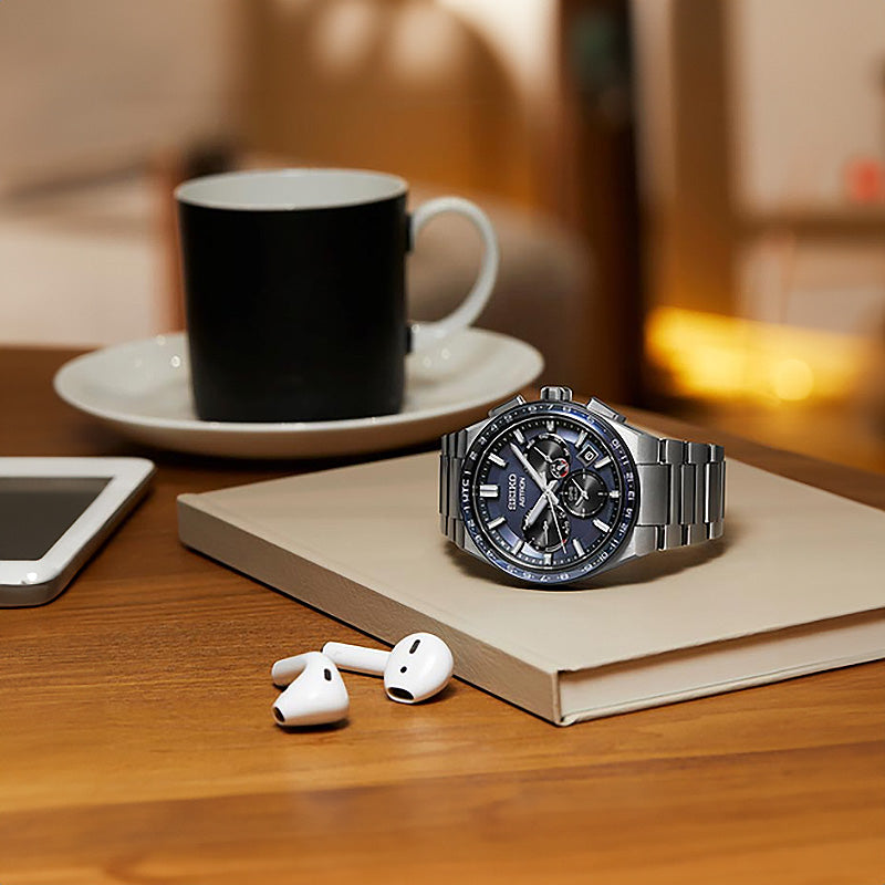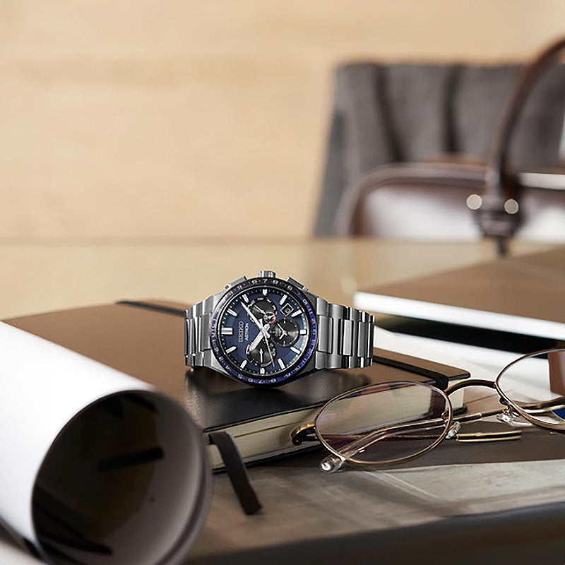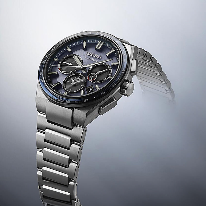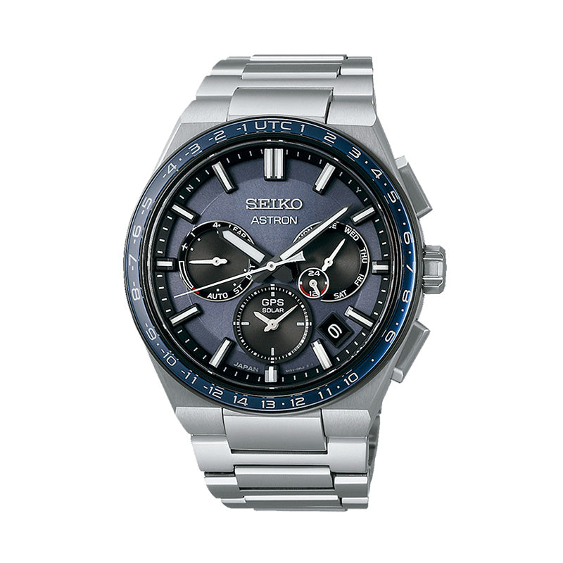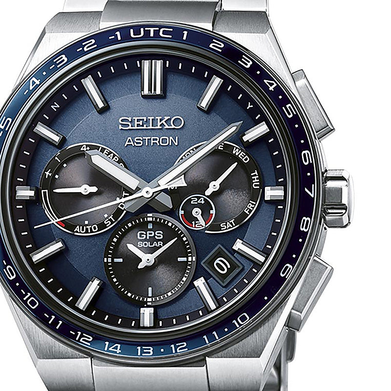 Relógio Seiko Astron GPS Titanium SSH109J1. Caixa com diâmetro aproximado de 43 mm, cor azul, prateada e bracelete cor prateada. Está equipado com um movimento gps - sincronização via satélite, solar. O relógio é estanque até 100 m | 10 bar | 10 atm. Composição: safira, titanium.