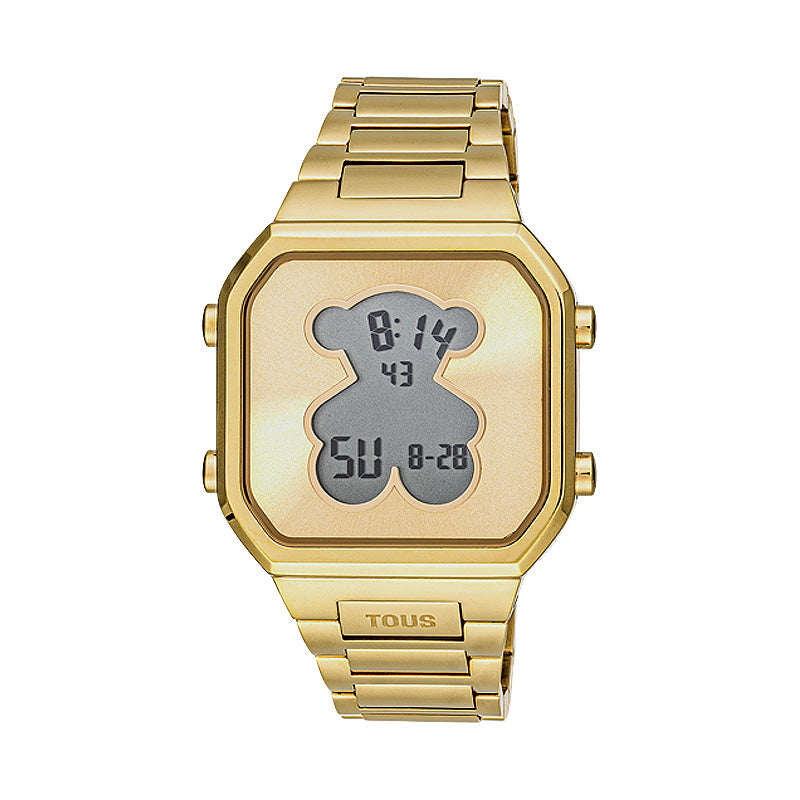 Relógio Tous D-Bear - 3000134300 digital para mulher, com caixa de aço dourado, mostrador dourado e bracelete em aço dourado. |