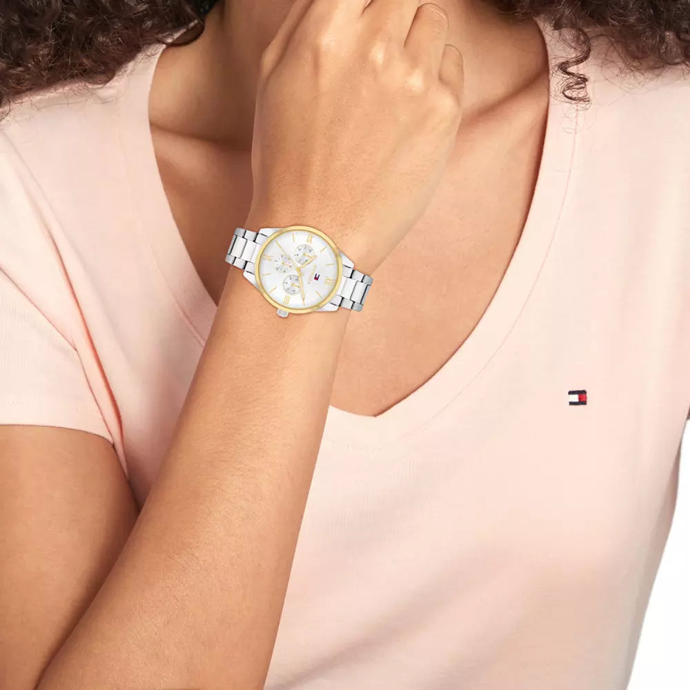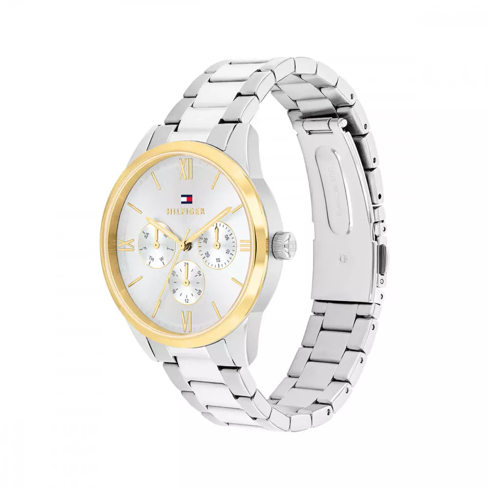 Este relógio Tommy Hilfiger tem uma caixa de Inox com um diâmetro de 38 mm e está equipado com uma bracelete de metal. A caixa possui um movimento Seiko Instruments Inc. e o relógio tem um vidro Mineral.