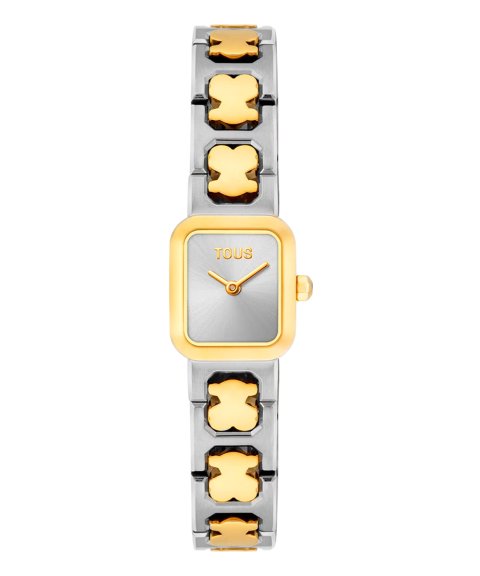 Relógio analógico com caixa octogonal de 21,7 x 16,2 mm em aço bicolor. Vidro mineral plano, movimento de quartzo japonês e resistência à água até 3 ATM. Bracelete em aço bicolor com ursinhos e fecho borboleta, combinando elegância e originalidade.