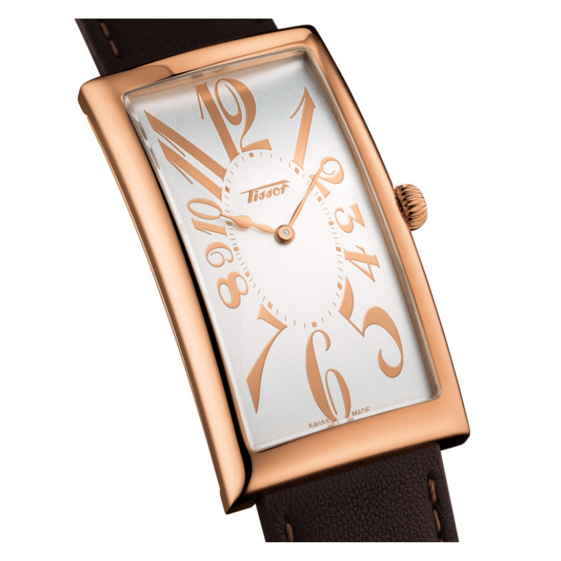 O Tissot Heritage Banana Centenary Edition recebe as suas inspirações de um modelo Tissot de 1916 que foi apelidado de Banana, devido ao seu perfil alongado e curvo seguindo a forma do pulso. Talvez o primeiro relógio ergonómico do mundo, a edição centenária celebra um lado diferente da história da Tissot e a torna uma peça única e exclusiva. Características:Caixa de aço inoxidável rosa tom de ouroPulseira de couroMovimento de quartzoCalibre: ETA 901.001Cristal mineralMostrador prateadoDisplay analógicoFivela de fechoResistência de água de 30MDiâmetro Aproximado da Caixa: 49 x 27mmEspessura Aproximada da Caixa: 7mm