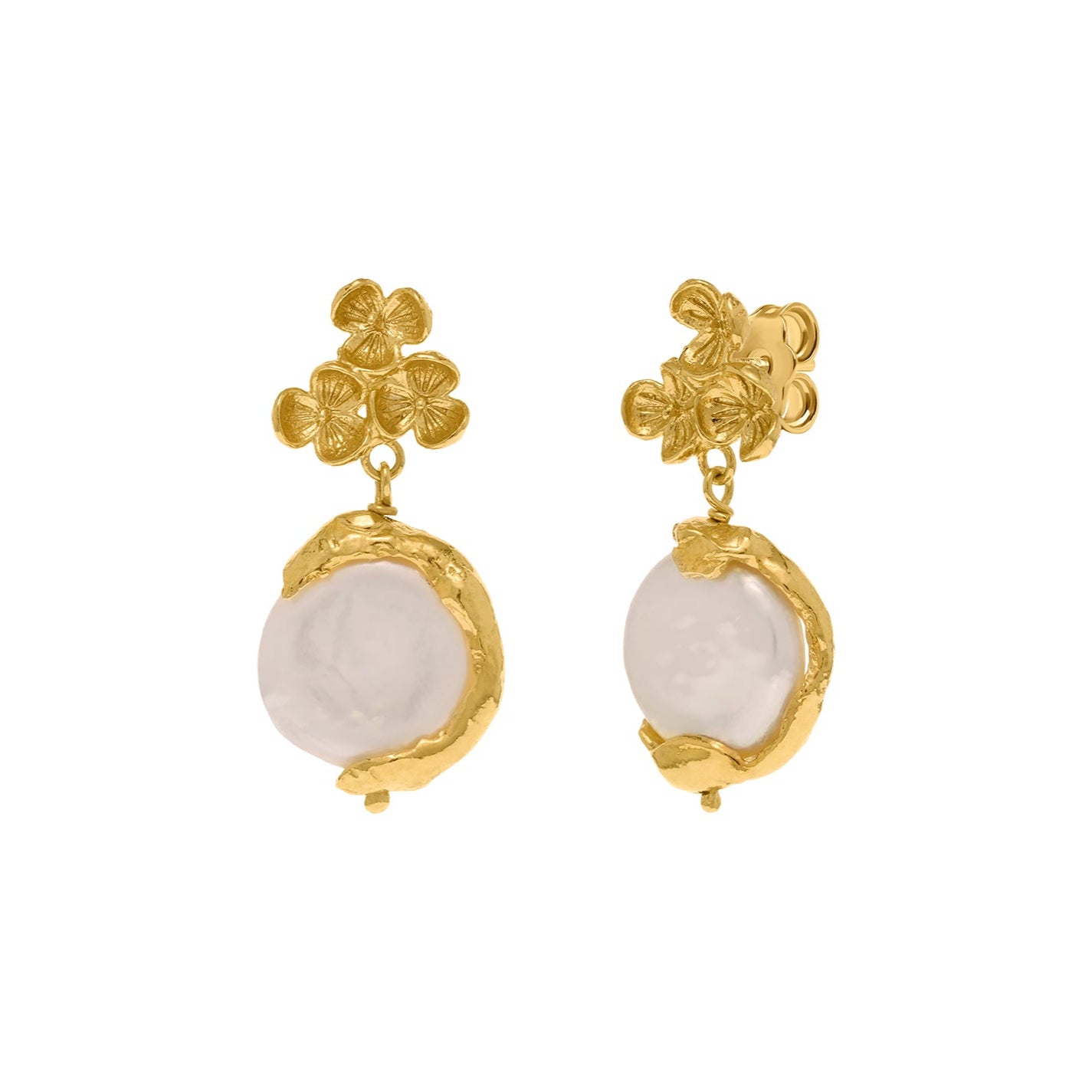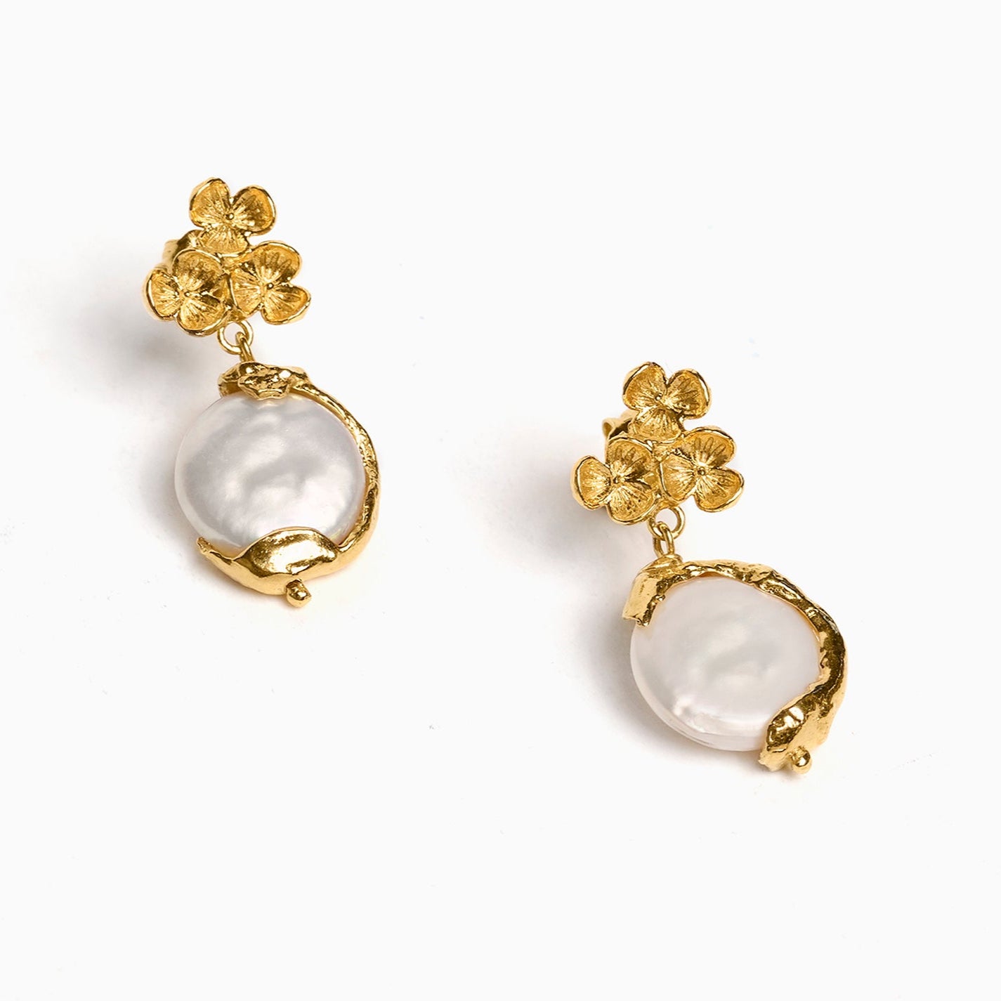 Brincos Freshwater II em prata de lei, banho de ouro, com duas pérolas de água doce. Esta joia carrega a essência de um recomeço. Feita à mão com um processo artesanal que garante a sua exclusividade e autenticidad