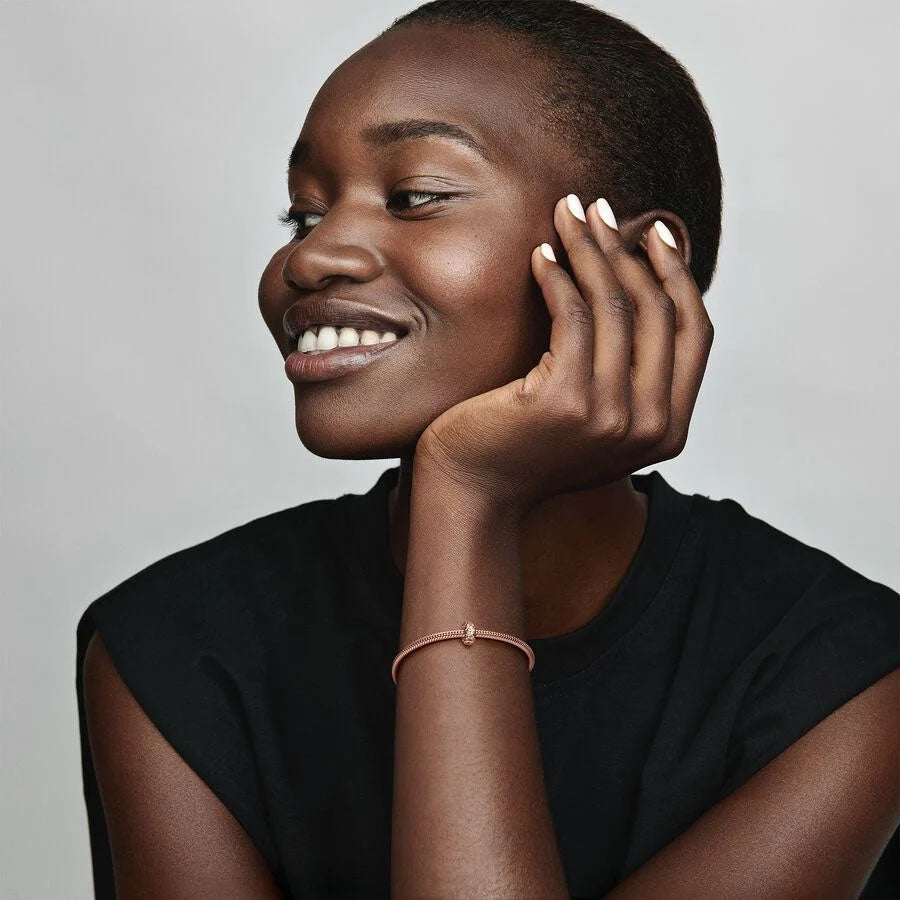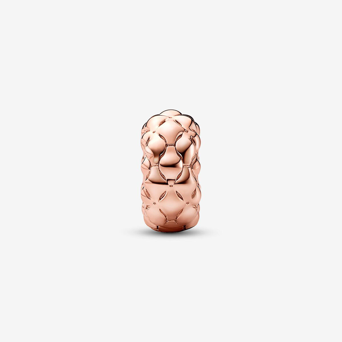 Acrescente ainda mais da icónica textura cravejada ao seu look com o Clip Cravejado da Pandora. Com a pirâmide, textura esférica e perfil fino, este clip na nossa liga única revestida a ouro rosa 14k ficará perfeito na sua pulseira de corrente cravejada, com o padrão a ecoar o novo ícone Pandora. A conta com revestimento de ouro rosa 14k apresenta inserções de silicone no interior e não pode ser conjugada em roscas, por isso ficará fixa num lugar na corrente à medida que se move, enquanto espaça as suas contas. Crie um look com estilo camuflado, adicionando-o à corrente com tachas para um apontamento arrojado.